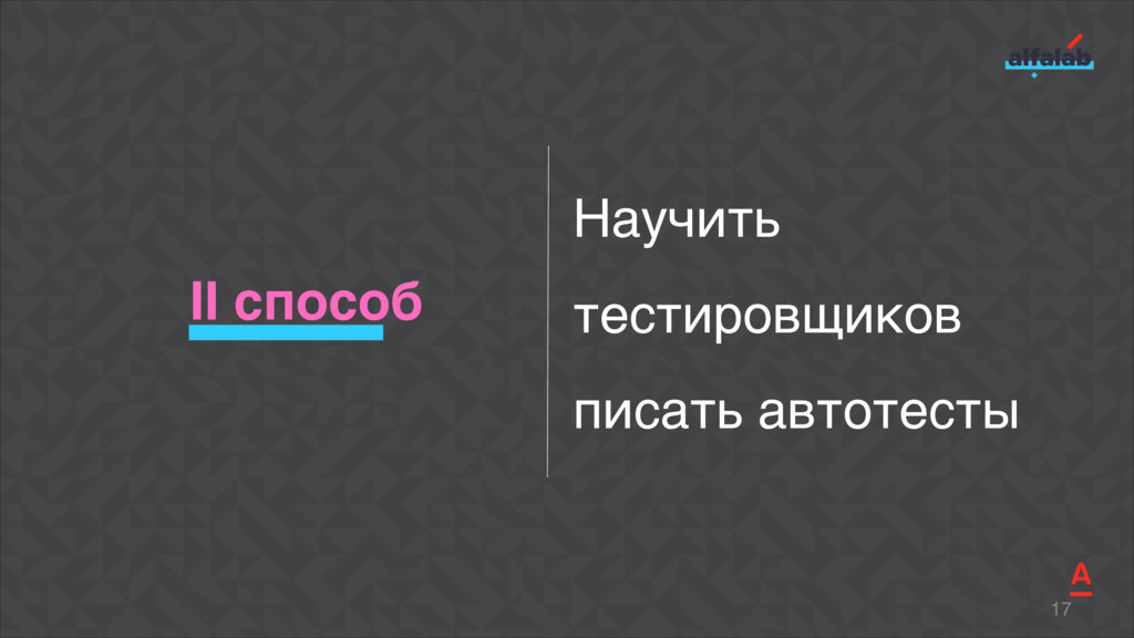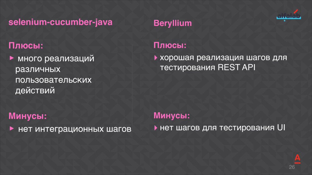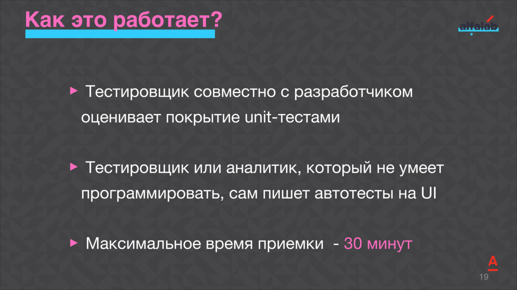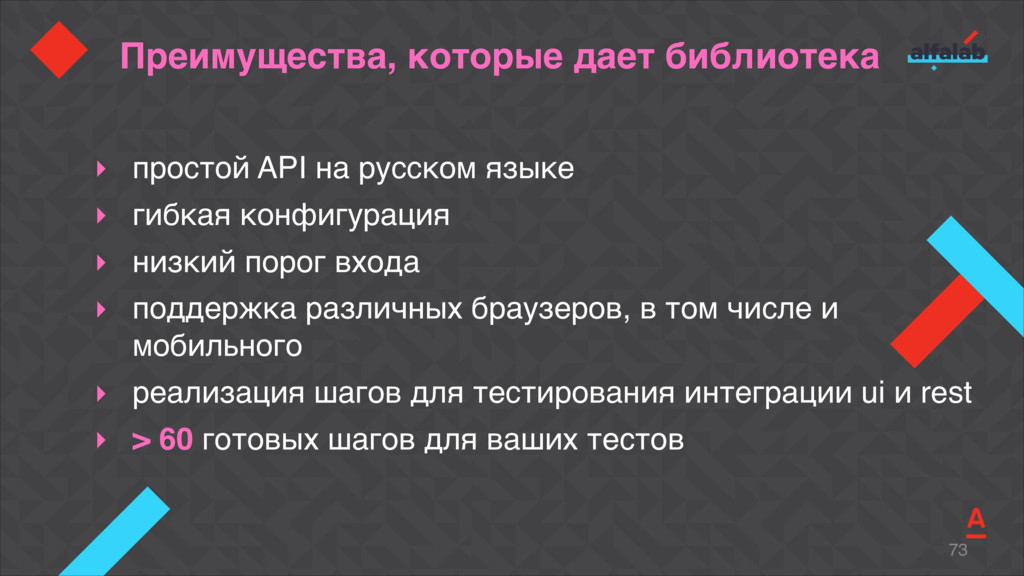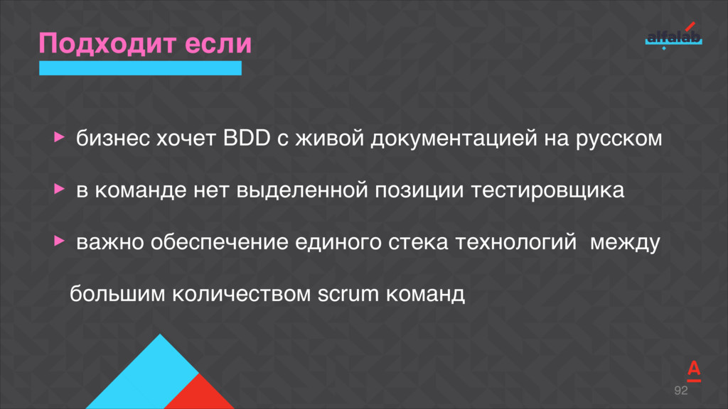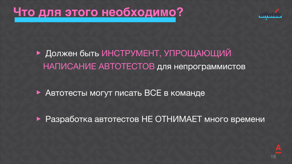 Talk about how to start automation fast in several teams at the same time, to ensure the unity of technical solutions, and do not lose in quality as well. Explicate the BDD library Akita that allows our teams to deliver a new feature completely covered by autotests with relevant documentation for just a week-long sprint.