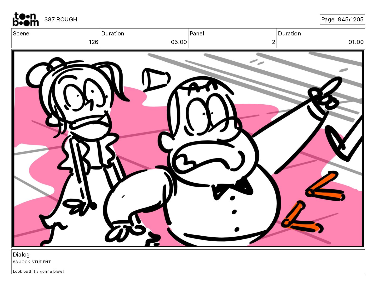 Dialog 83 JOCK STUDENT Look out! Itʼs gonna blow! 387 ROUGH Page 945/1205