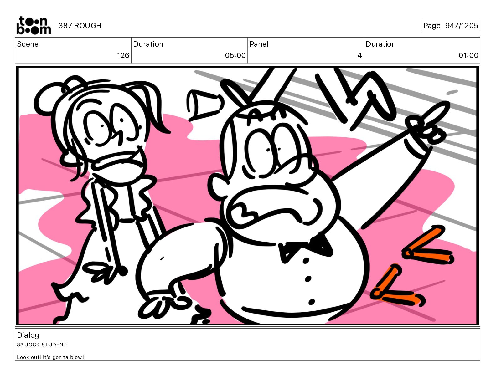 Dialog 83 JOCK STUDENT Look out! Itʼs gonna blow! 387 ROUGH Page 947/1205