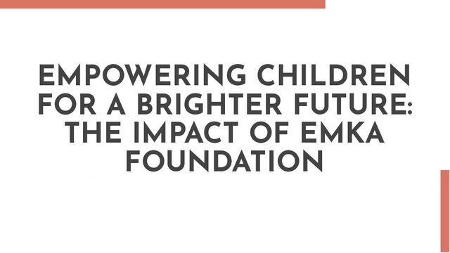 Education, as the light that brightens the future, radiates hope and optimism. The Emka Foundation's unwavering commitment to this cause demonstrates that every child, regardless of their circumstances, deserves the opportunity to learn, grow, and thrive. By nurturing young minds today, the Emka Foundation is ensuring a brighter and more equitable tomorrow for these children and the world they will shape. In a society where the impact of education cannot be overstated, the Emka Foundation is a shining example of how one person's dedication can make a profound and lasting difference in the lives of many.
