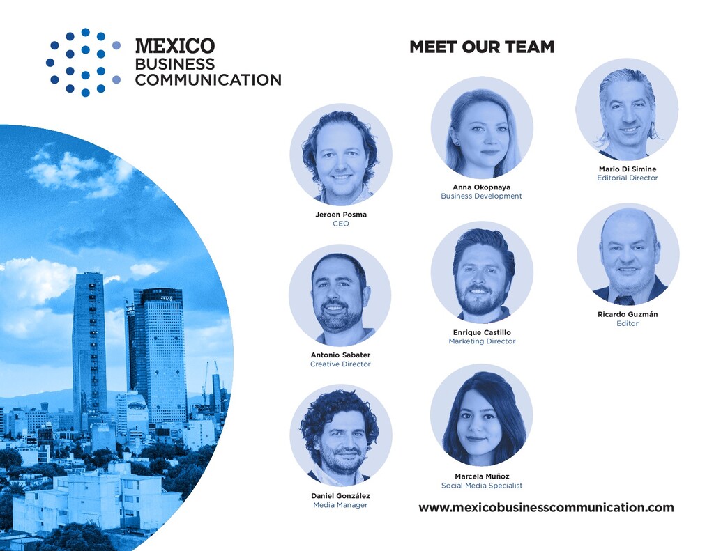 Social Media Specialist Antonio Sabater Creative Director Anna Okopnaya Business Development Jeroen Posma CEO Enrique Castillo Marketing Director Ricardo Guzmán Editor Daniel González Media Manager www.mexicobusinesscommunication.com