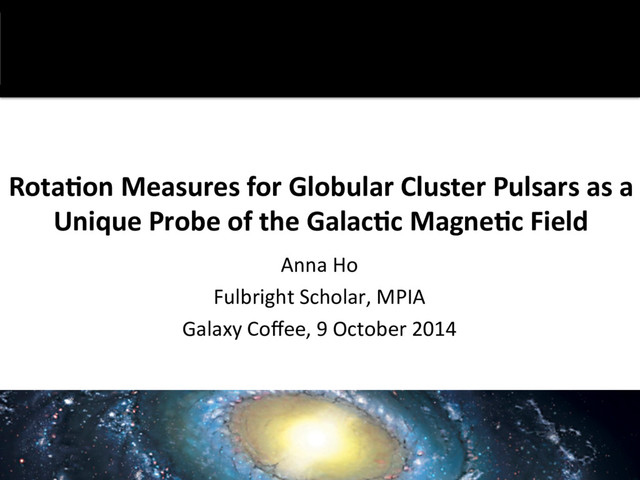 Probe of the Galac%c Magne%c Field Anna Ho Fulbright Scholar, MPIA Galaxy Coffee, 9 October 2014