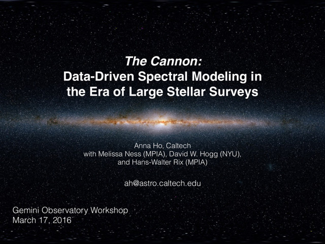 Modeling in the Era of Large Stellar Surveys Anna Ho, Caltech with Melissa Ness (MPIA), David W. Hogg (NYU), and Hans-Walter Rix (MPIA) [email protected]