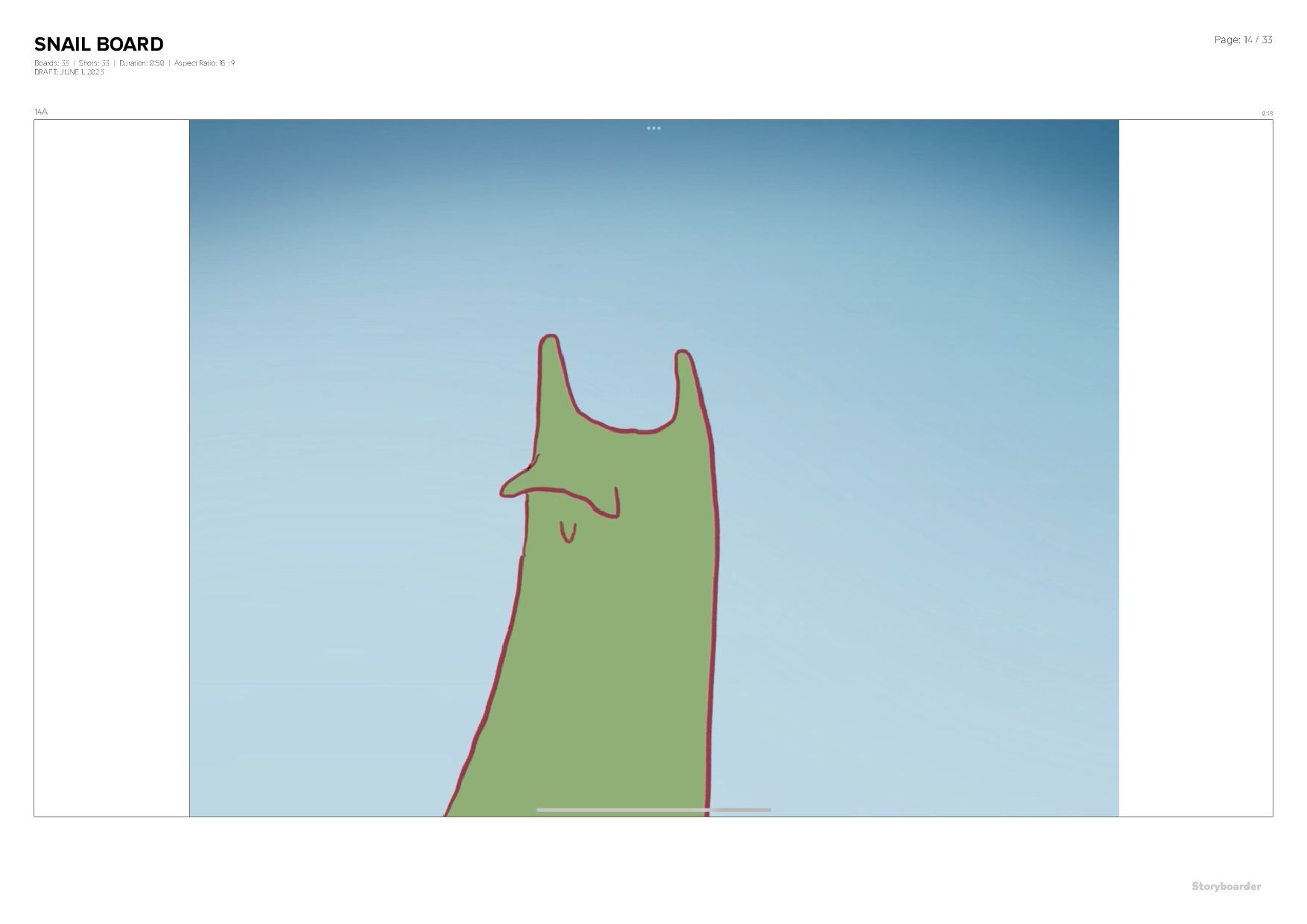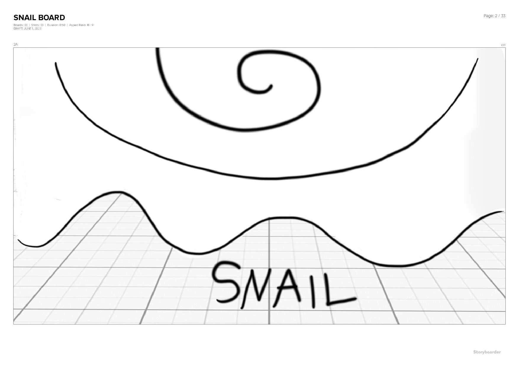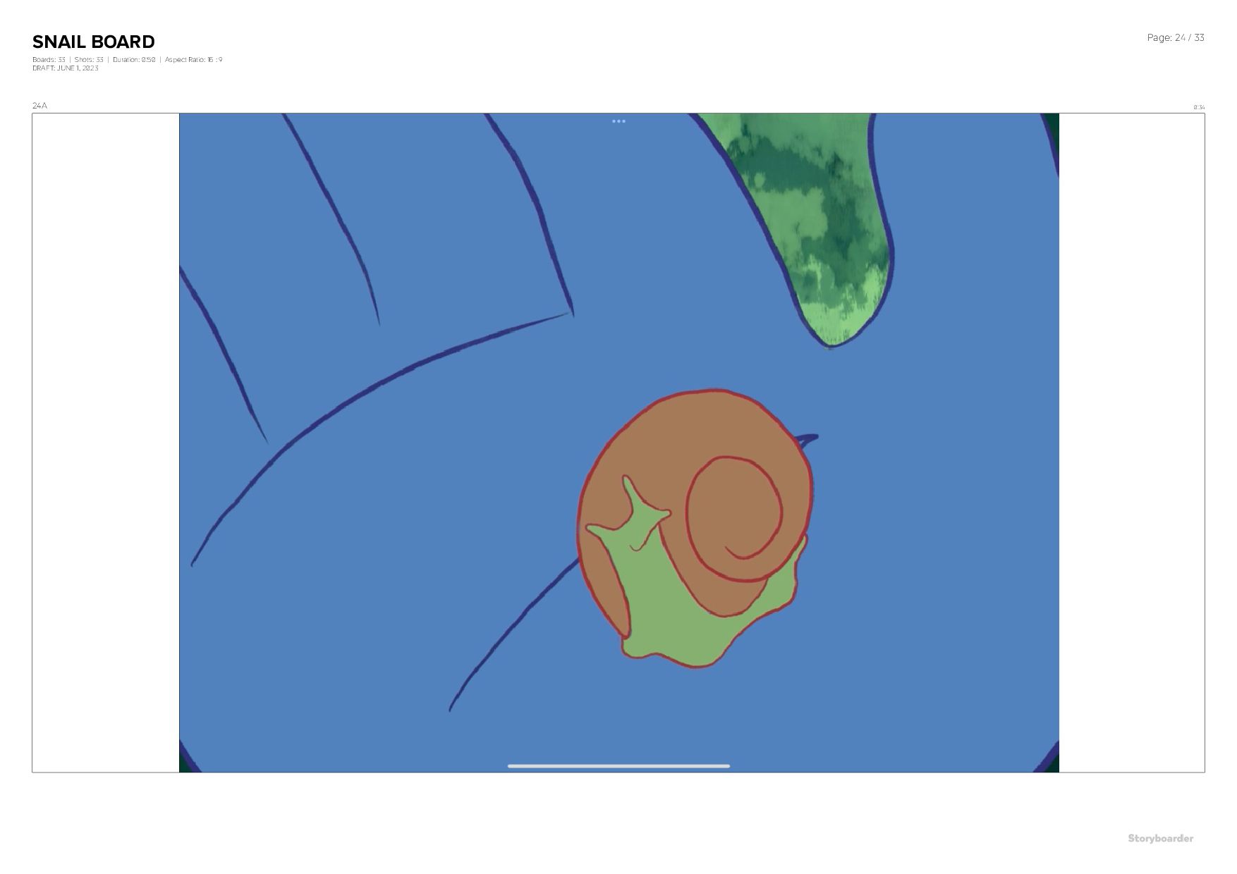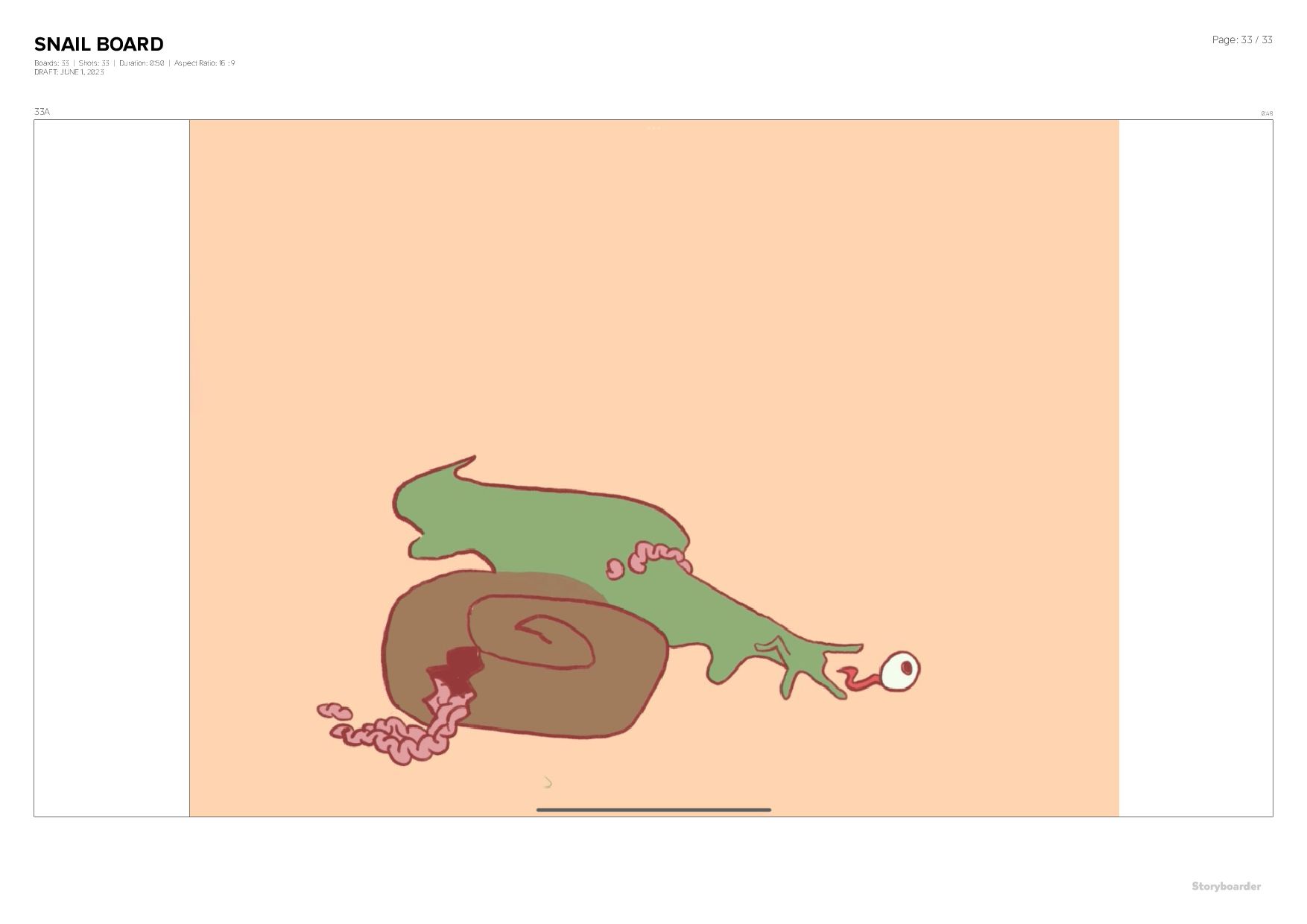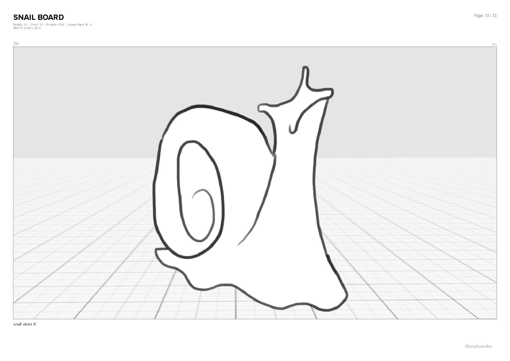 | Aspect Ratio: 16 : 9 DRAFT: JUNE 1, 2023 Page: 31 / 33 31A 0:44 snail does X