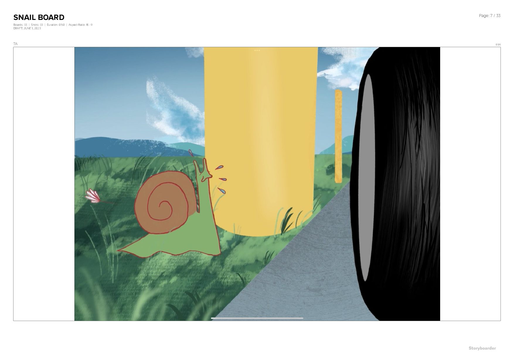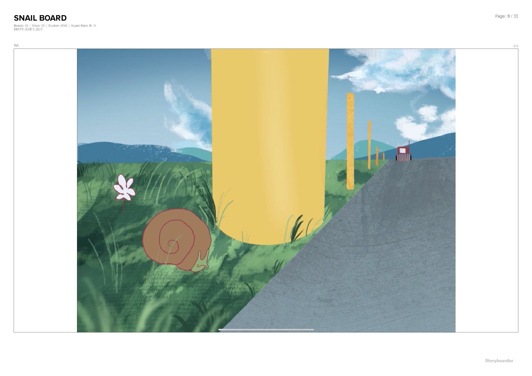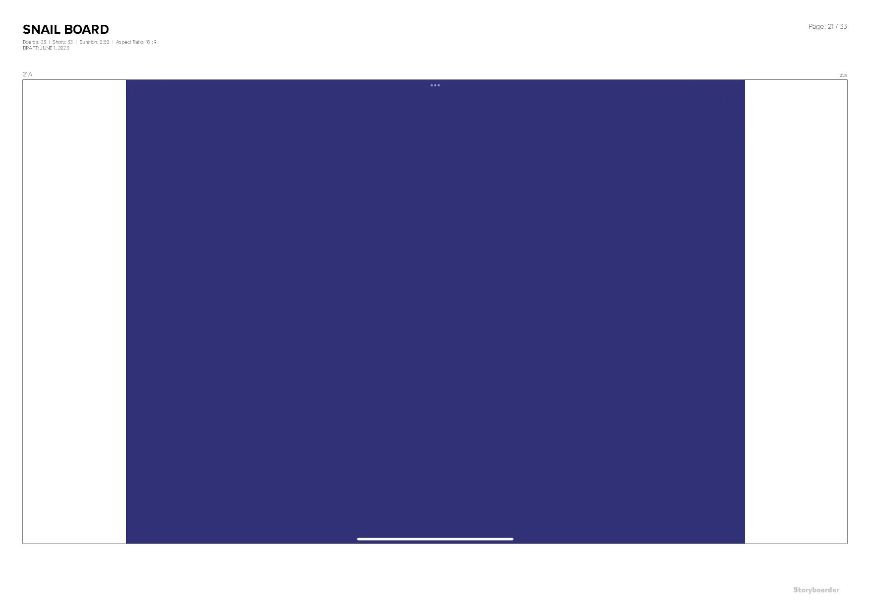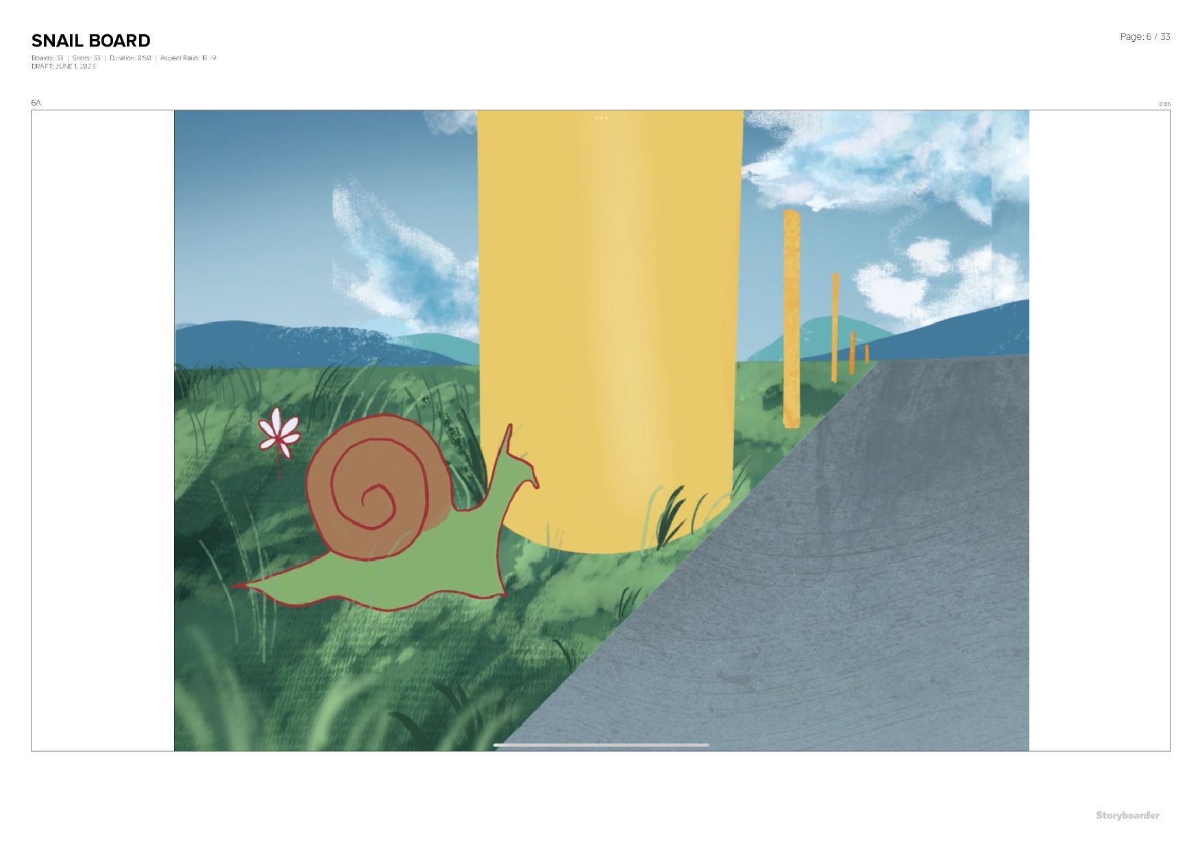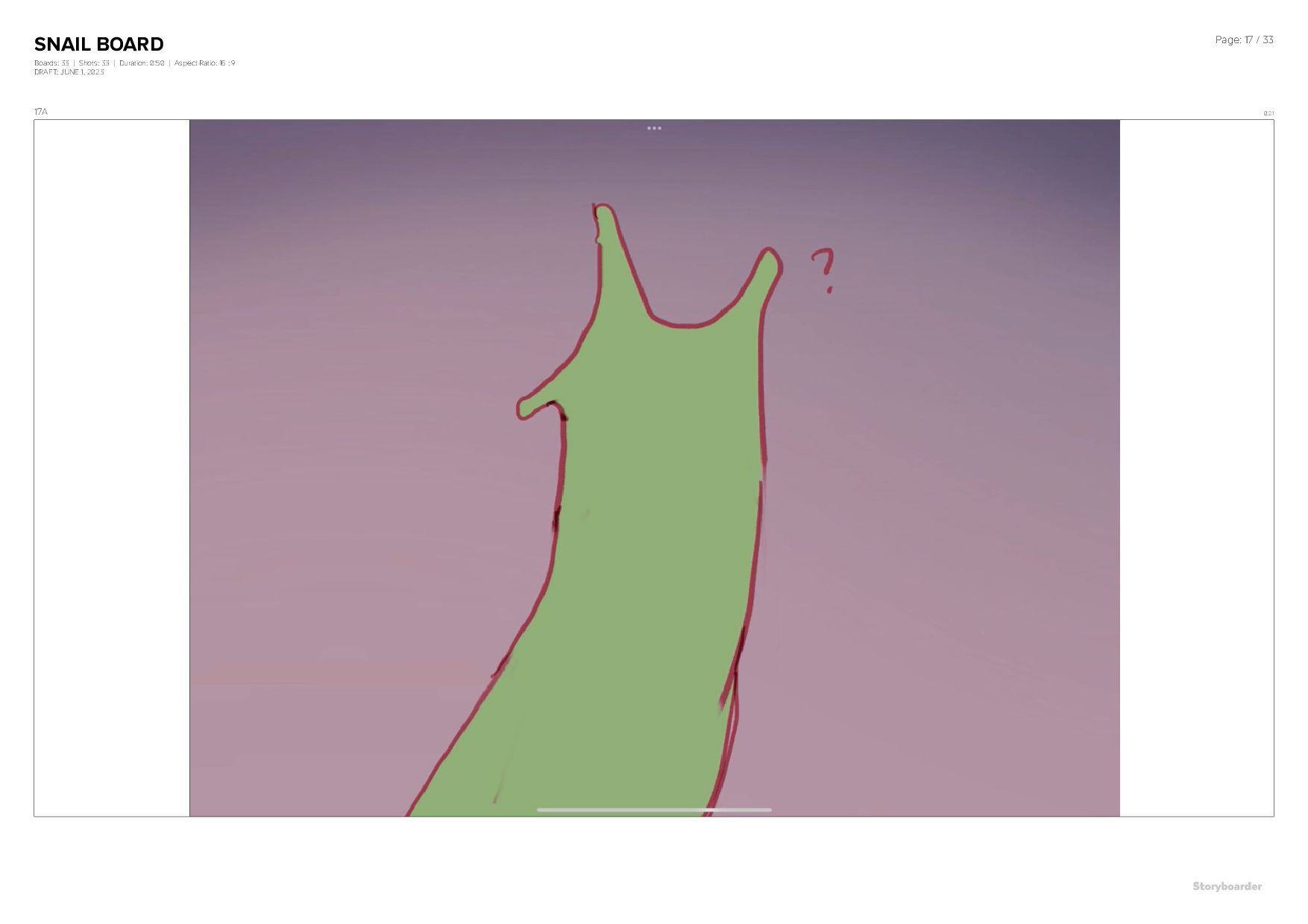 | Aspect Ratio: 16 : 9 DRAFT: JUNE 1, 2023 Page: 31 / 33 31A 0:44 snail does X