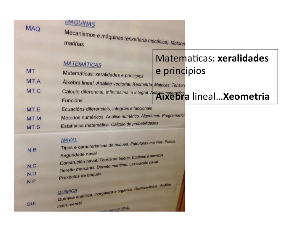 Matema:cas: xeralidades e principios Aixebra lineal…Xeometria