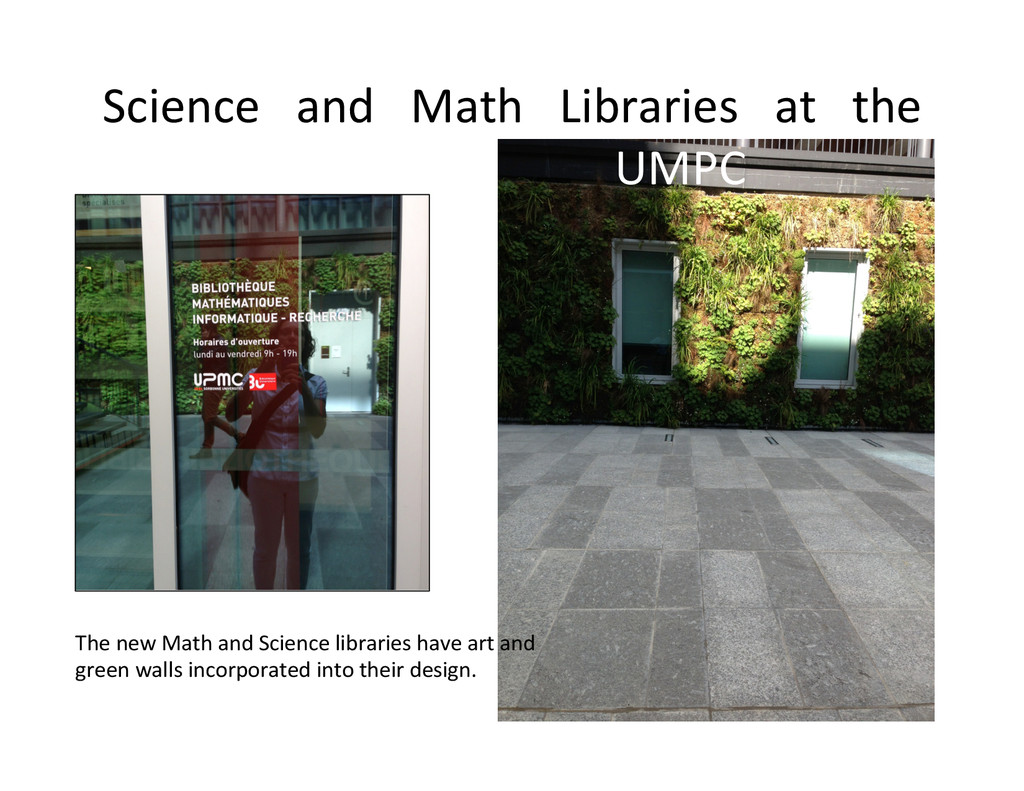the UMPC The new Math and Science libraries have art and green walls incorporated into their design.