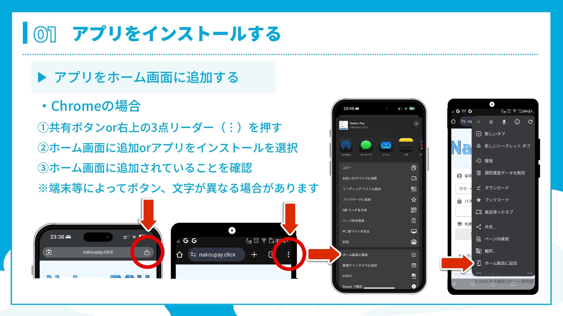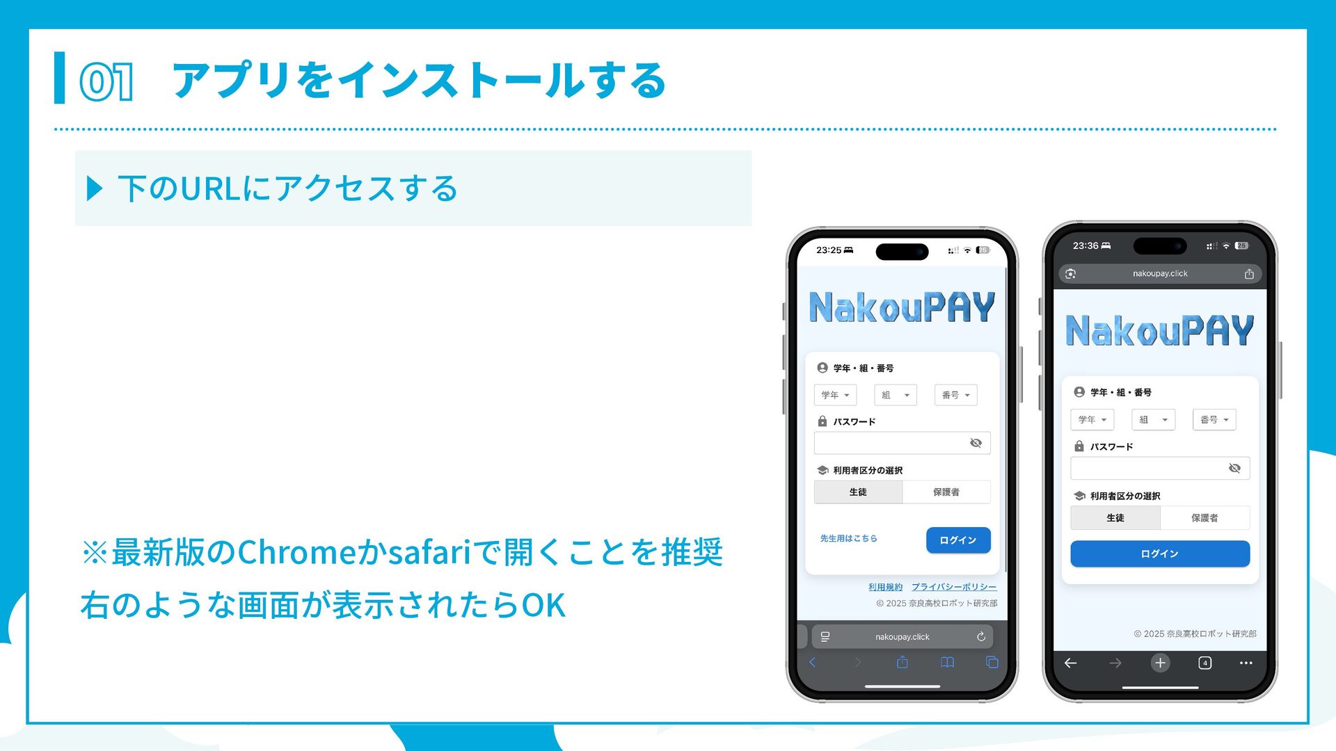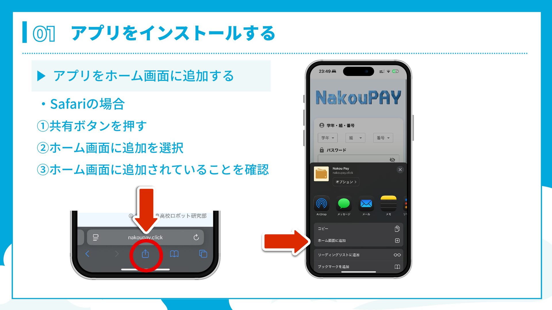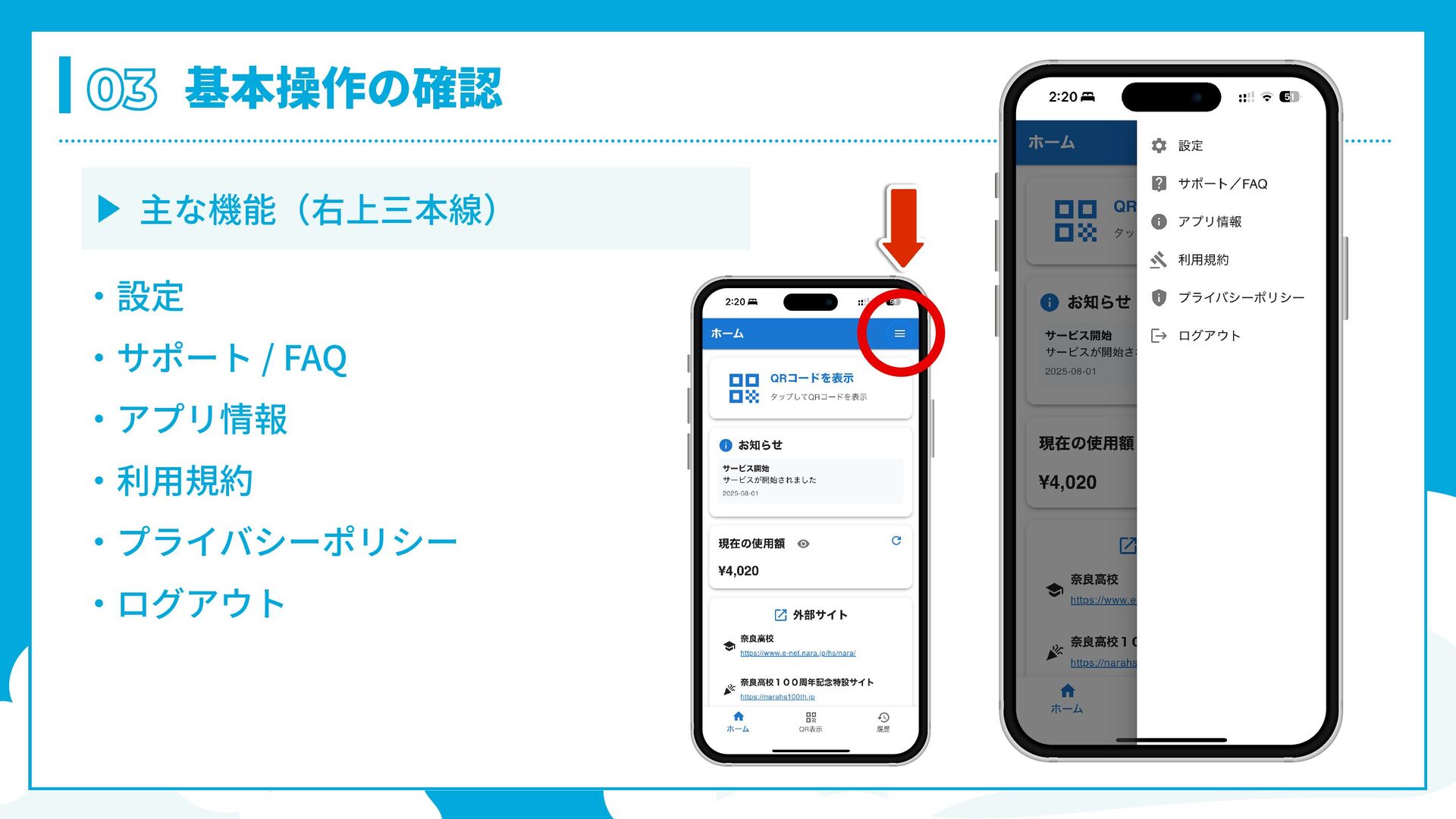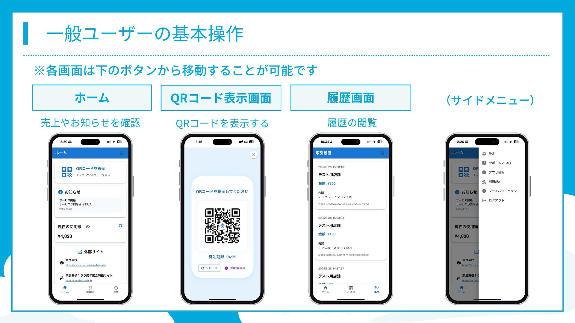 3. アピールポイント 操作方法が分からない利用者へのサポートや、店舗側の操作ミスへの対応など、トラブル発生時の柔軟な対応が可能 利用者を学校関係者(生徒・保護者・教員)に限定することで、後払いを実現し、現金の物理的な移動を最小限に抑える 作品の強み 最もこだわったポイント フロントエンド:React, PWA(Progressive Web Apps) 配信基盤:Amazon