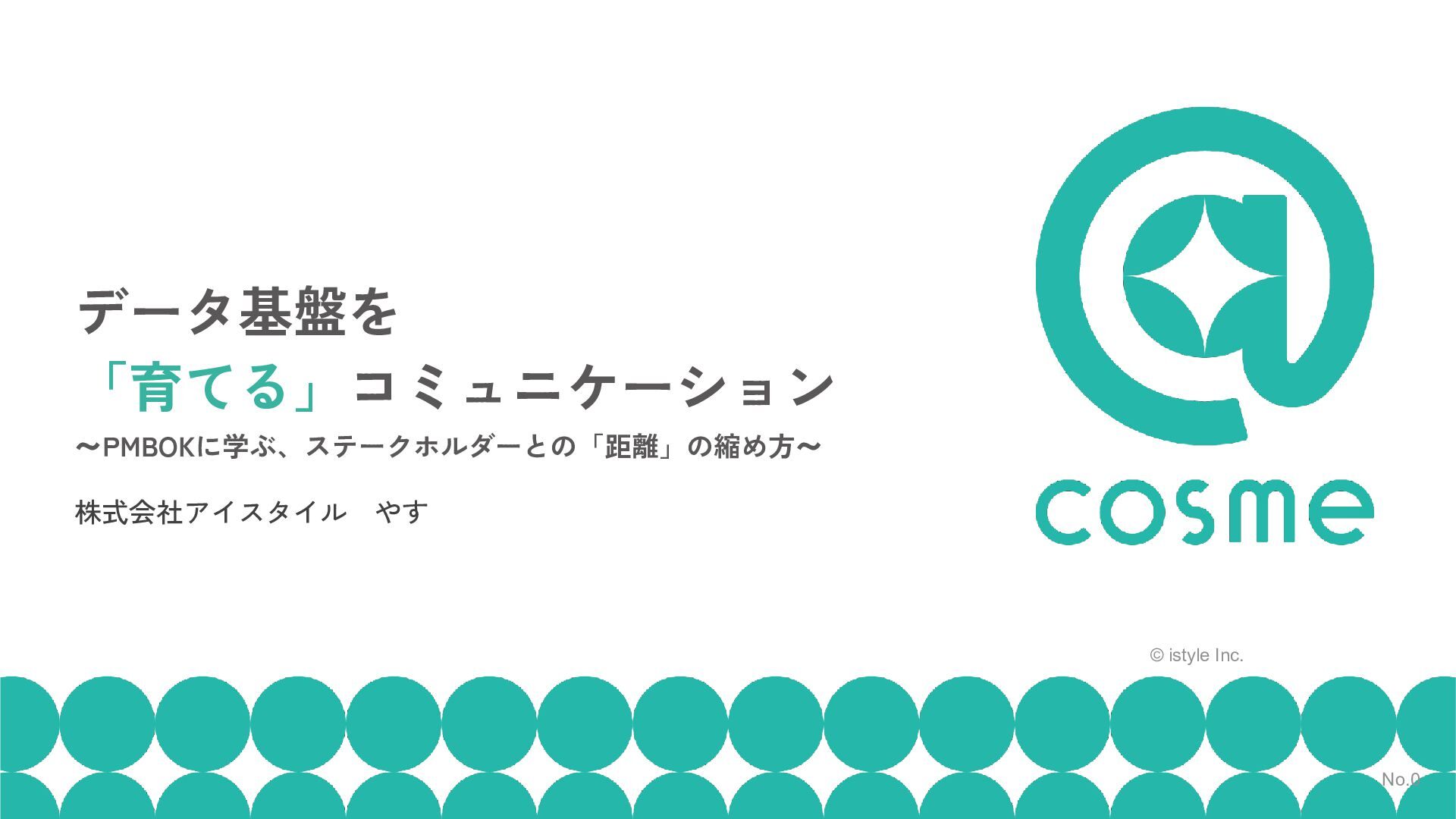 データ基盤を 「育てる」コミュニケーション ~PMBOKに学ぶ、ステークホルダーとの「距離」の縮め方~ © istyle Inc. No.0 株式会社アイスタイル やす