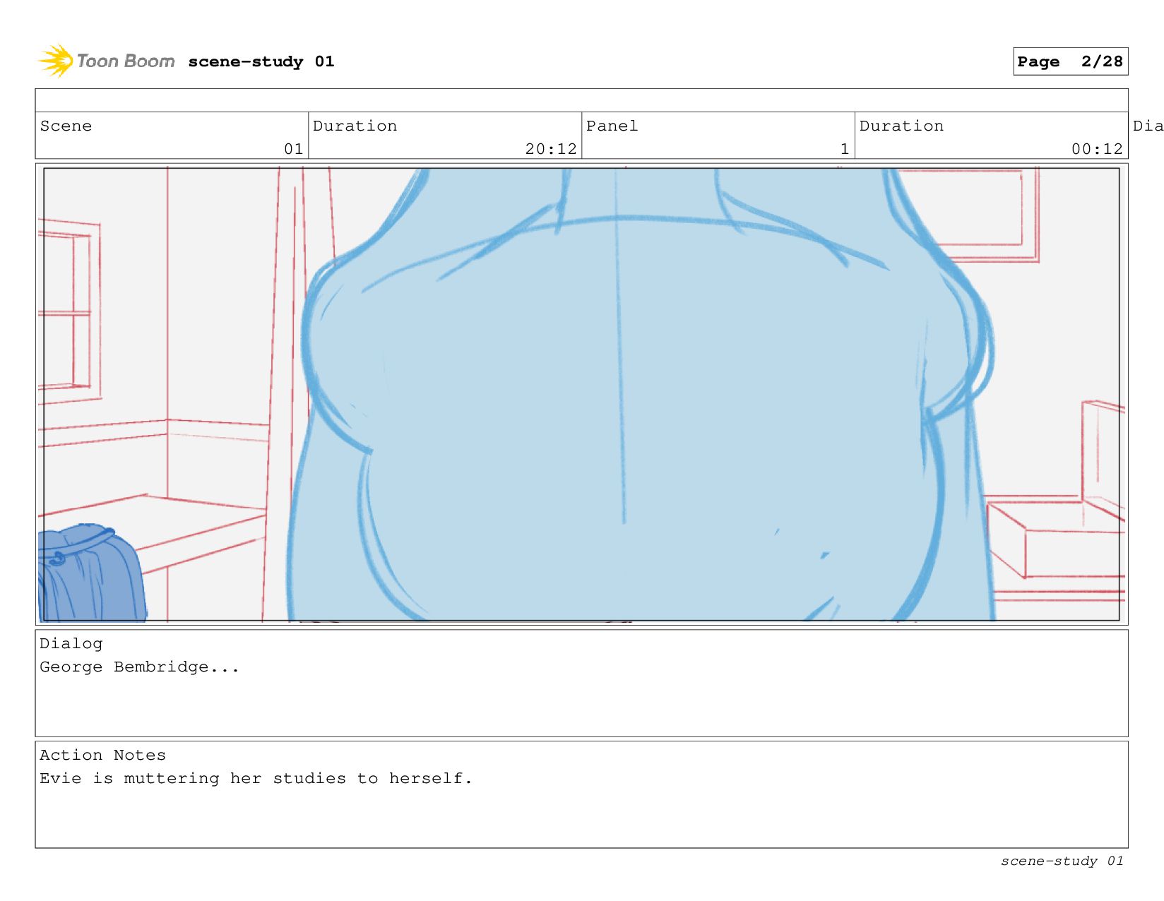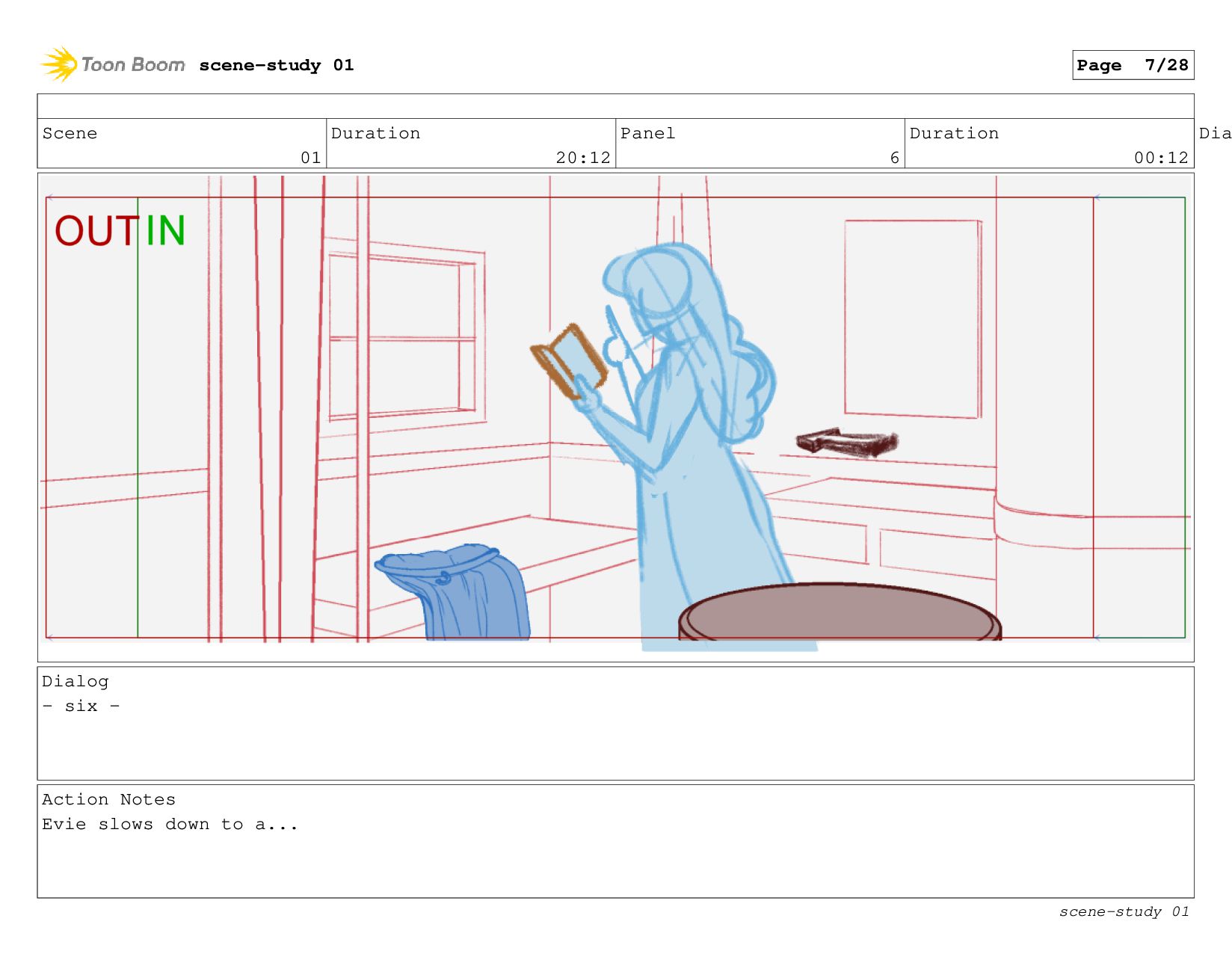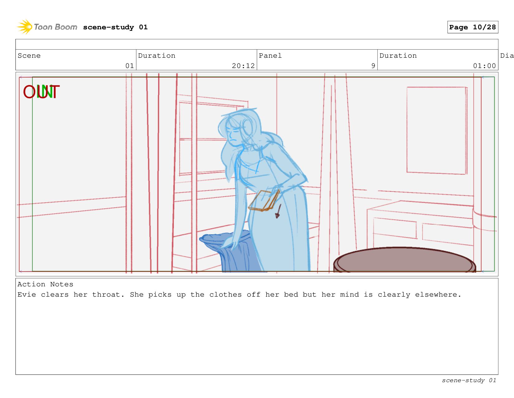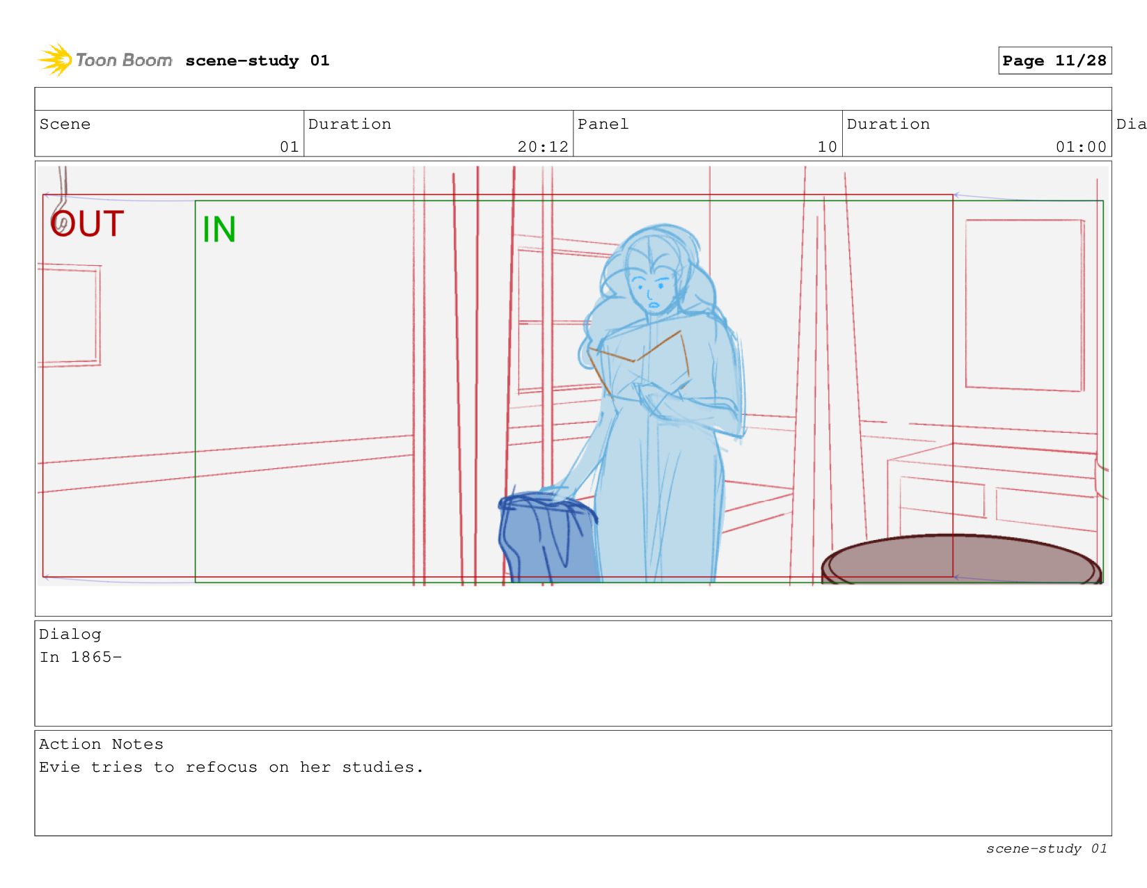 The scene: Evie tries to study in her cabin.