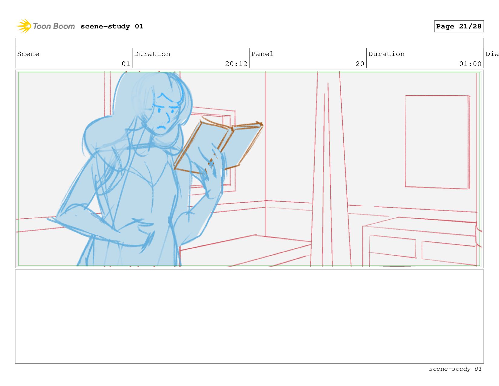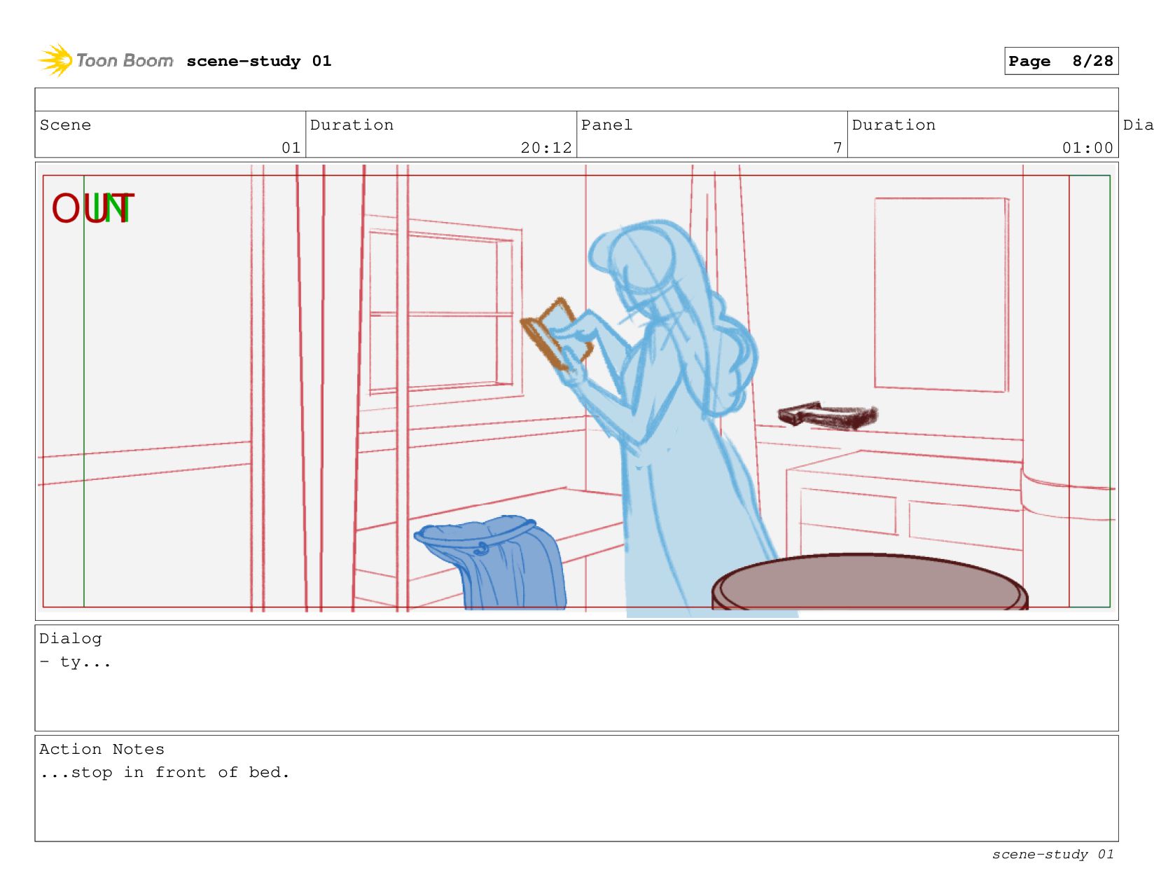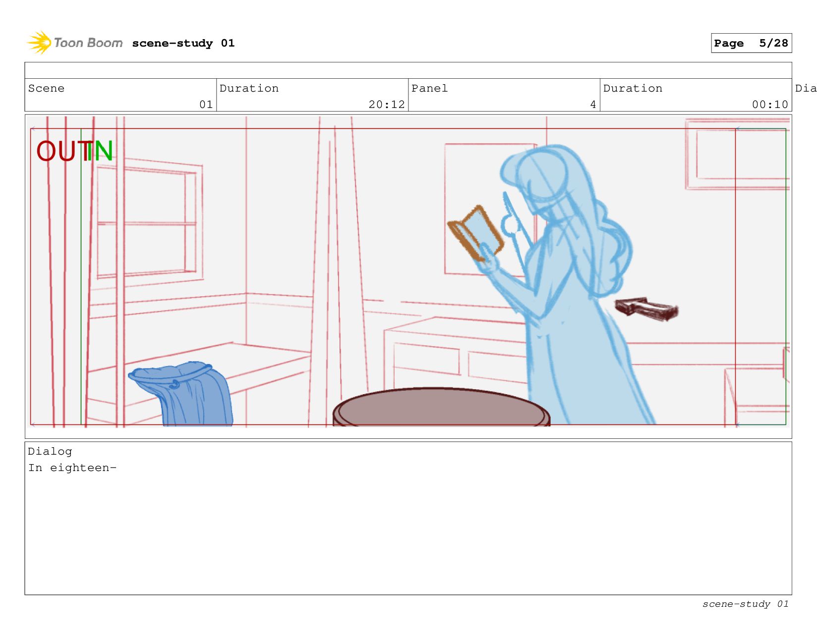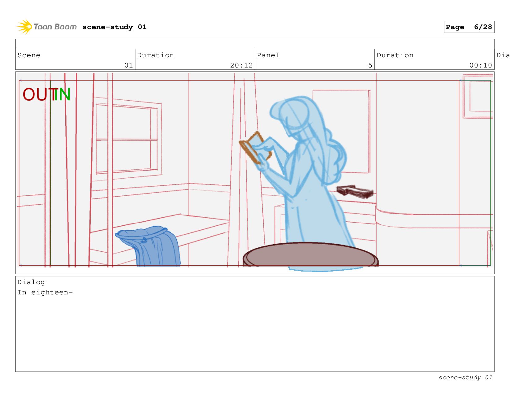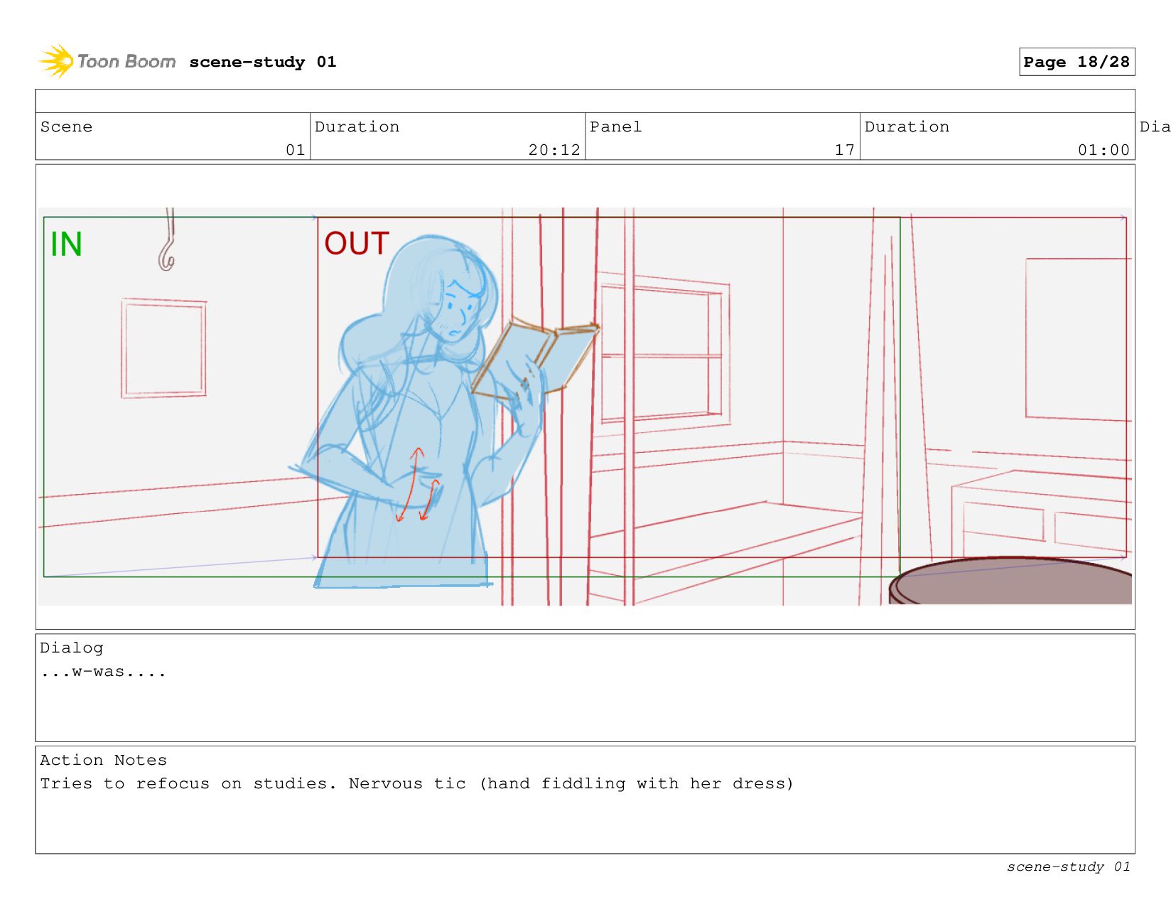 The scene: Evie tries to study in her cabin.