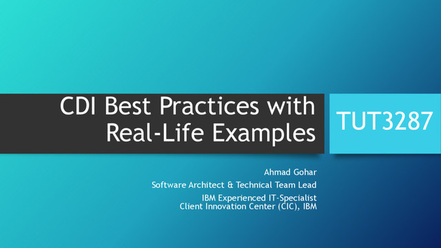 As the adoption of Contexts and Dependency Injection (CDI) for Java EE API grows, it is important to understand how to use CDI effectively to maximize the benefits of using a loosely coupled, type-safe, annotation-driven dependency injection solution. This session outlines the best practices for using CDI, such as annotations versus XML, @Named as a qualifier, qualifier type safety versus verbosity, effective use of producers/disposers, using scopes properly, best practices for using conversations, defining effective stereotypes, interceptors versus decorators, static versus dynamic injection/lookup, CDI versus Java EE resource injection, using CDI with EJB 3.1, CDI/JSF 2 integration patterns, and CDI/JPA 2 usage patterns.