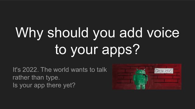 It's 2022. The world wants to talk more than type. Is your app there yet?