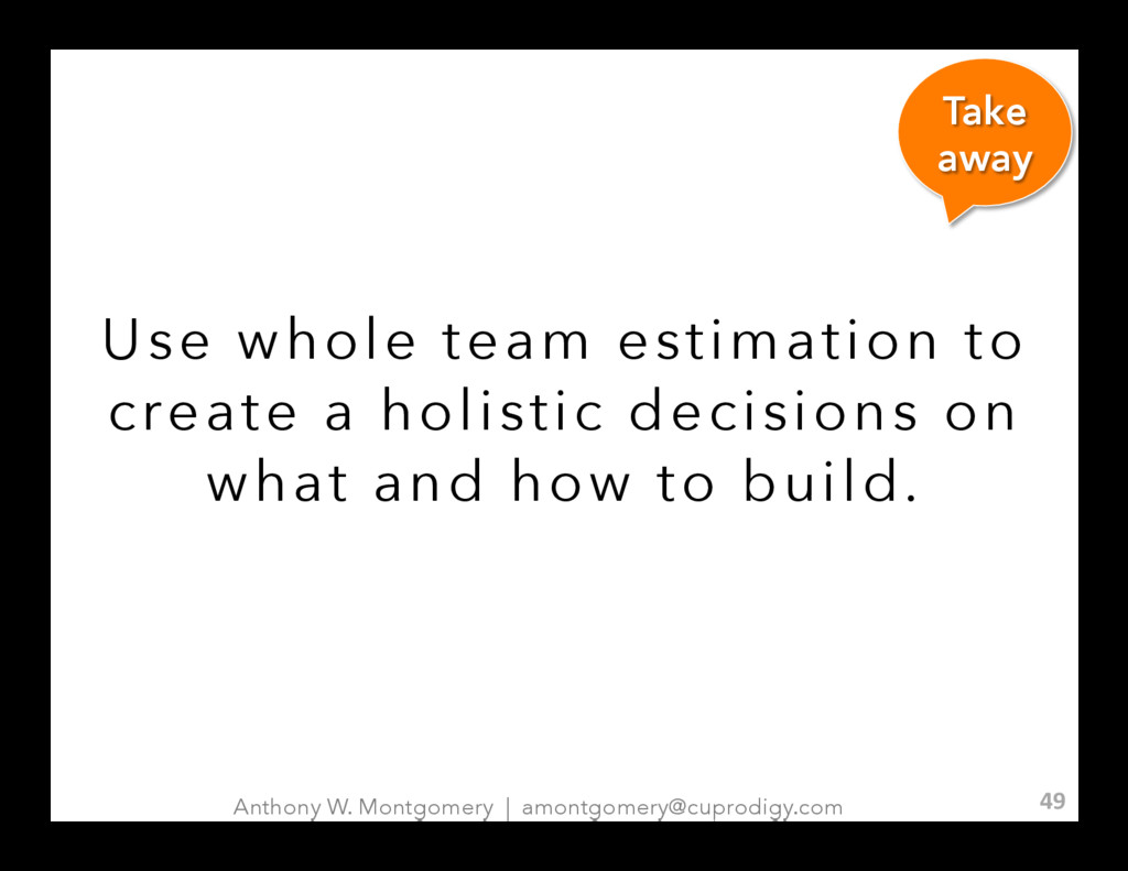 - Creative Commons Attribution-NonCommercial-ShareAlike License http://www.flickr.com/photos/84929570@N00 Created with Haiku Deck 46 Estimates are the first stage of commitment; let teams create estimates so they own them. Take away