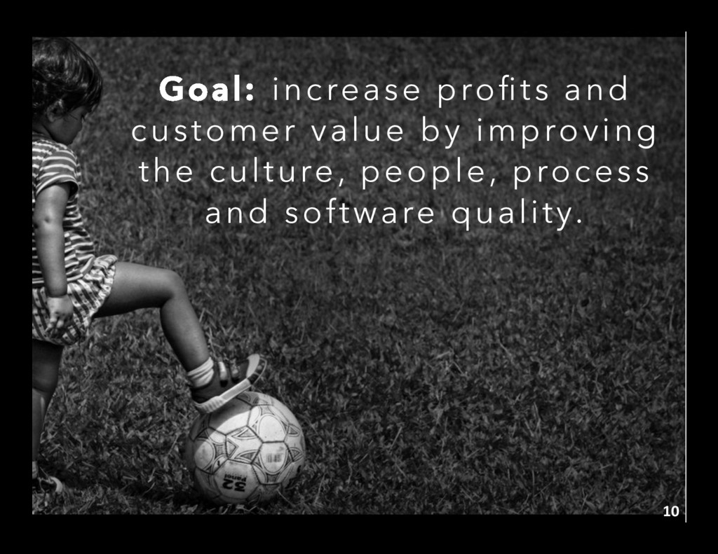 a goal, but a means to an end. An agile transformation is a means to improve culture, people, process and quality in order to grow profits and create more customer value. 11