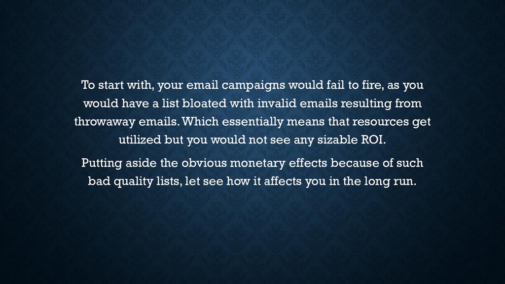 Disposable email addresses are really a pain for website owners and hence it becomes super important to detect temporary emails in real time. Disposable emails ceases to exist in few minutes or hours depending on the service provider, which means as a website owner all the followup email campaigns you organize for this email address would bounce. Obviously one email bouncing wouldn't probably get you into trouble but this does accrue over time and might adversely affect your sender reputation.