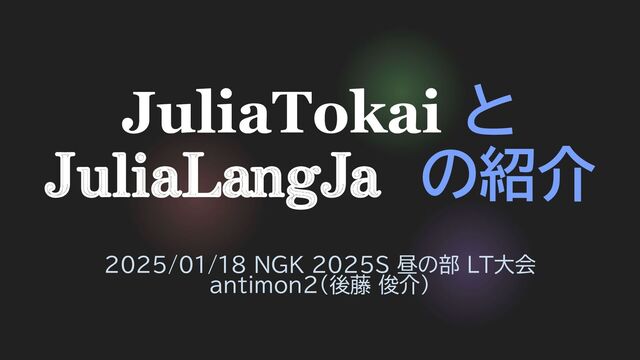 JuliaTokai と JuliaLangJa の紹介 2025/01/18 NGK 2025S 昼の部 LT大会 antimon2(後藤