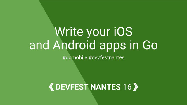 Include Go code in iOS & Android apps DEVFEST NANTES 16 Great for logic-heavy apps Maximize code reuse Type limitations But JSON, FlatBuffers, HTTP, wrappers… Go, try it :) Apps already in the stores