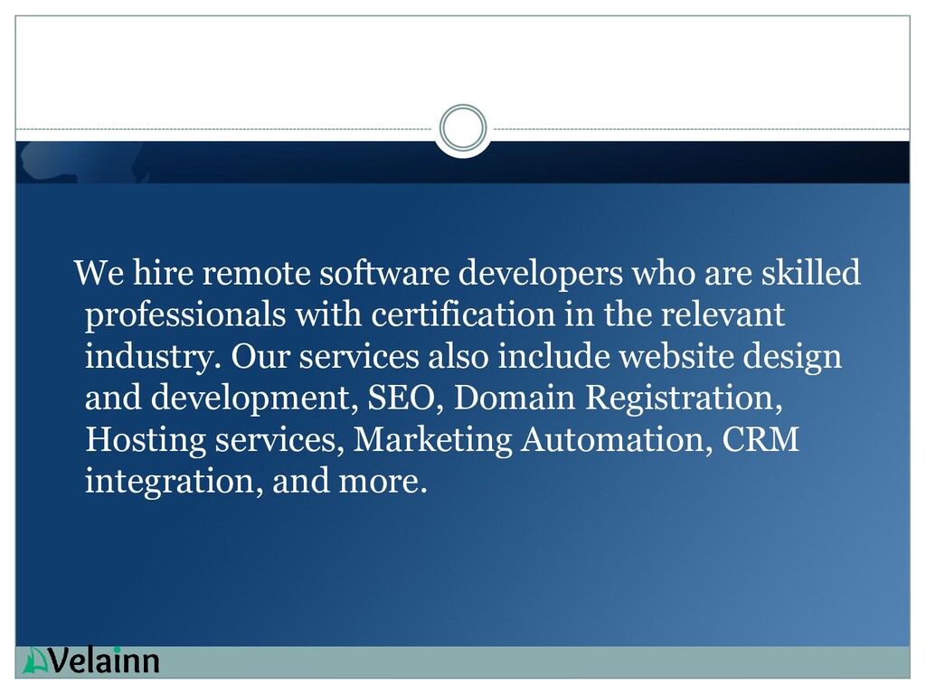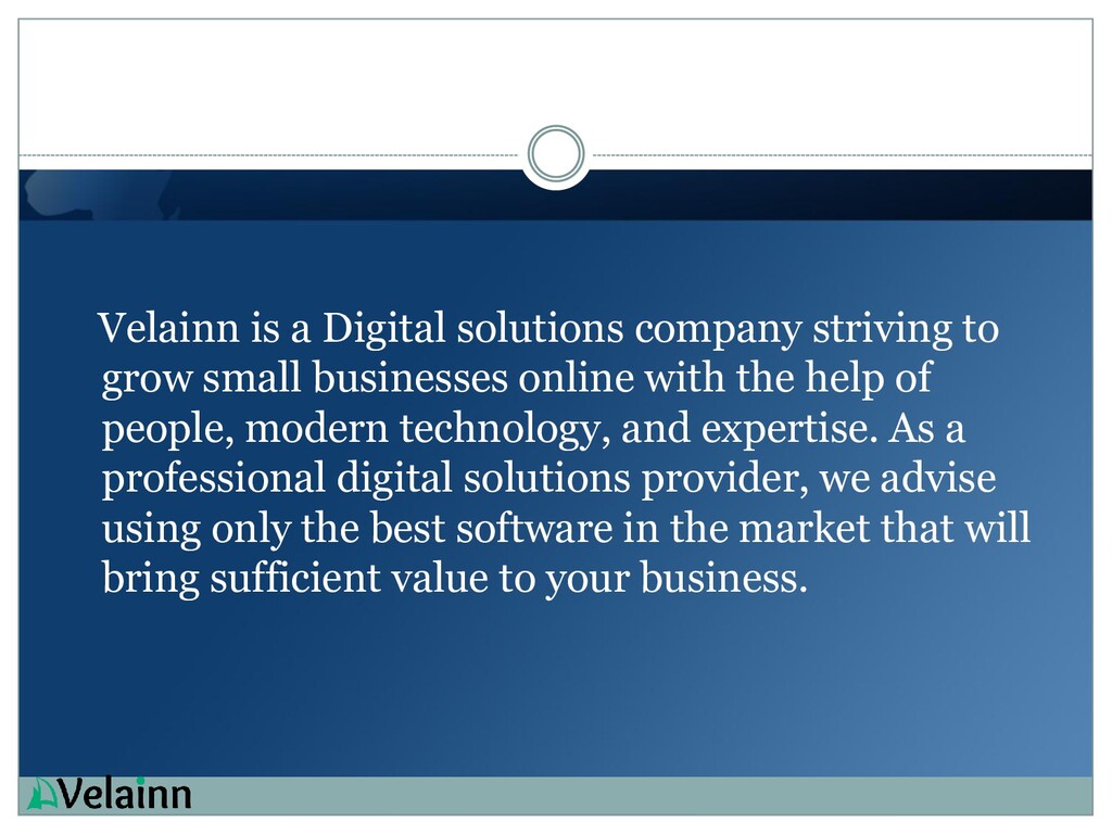 Velainn is a Digital solutions company striving to grow small businesses online with the help of people, modern technology, and expertise. As a professional digital solutions provider, we advise using only the best software in the market that will bring sufficient value to your business. We hire remote software developers who are skilled professionals with certification in the relevant industry.