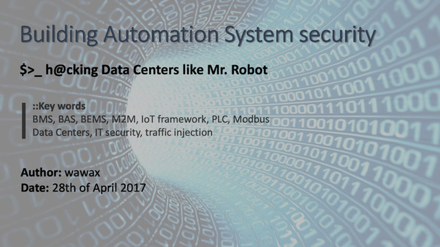 maximum the attack surface • Use live monitoring tool / network intrusion detection systems • BMS alarms can help to identify that a problem occurred but won’t prevent the outage • Don’t allow unknown USB keys to be plugged on your system • Security matters so prefer system integrators who have a minimum culture about cyber security