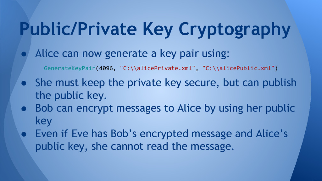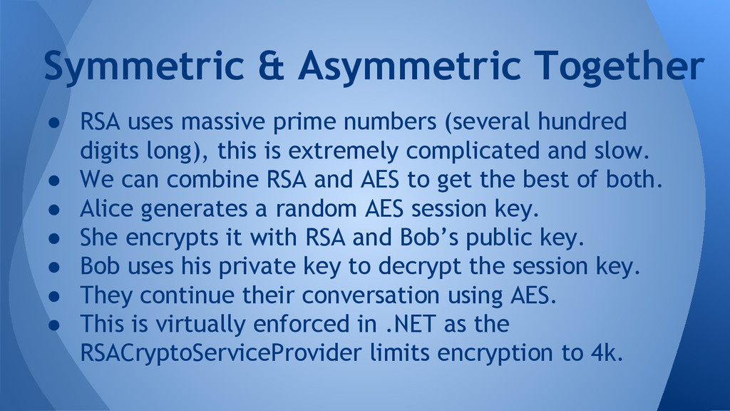 Can you keep a secret? The anecdotal evidence would suggest the answer is a resounding no! In this talk I'll introduce you to some cryptographic principles and show how you can make use of them in .NET and how they can be used correctly.