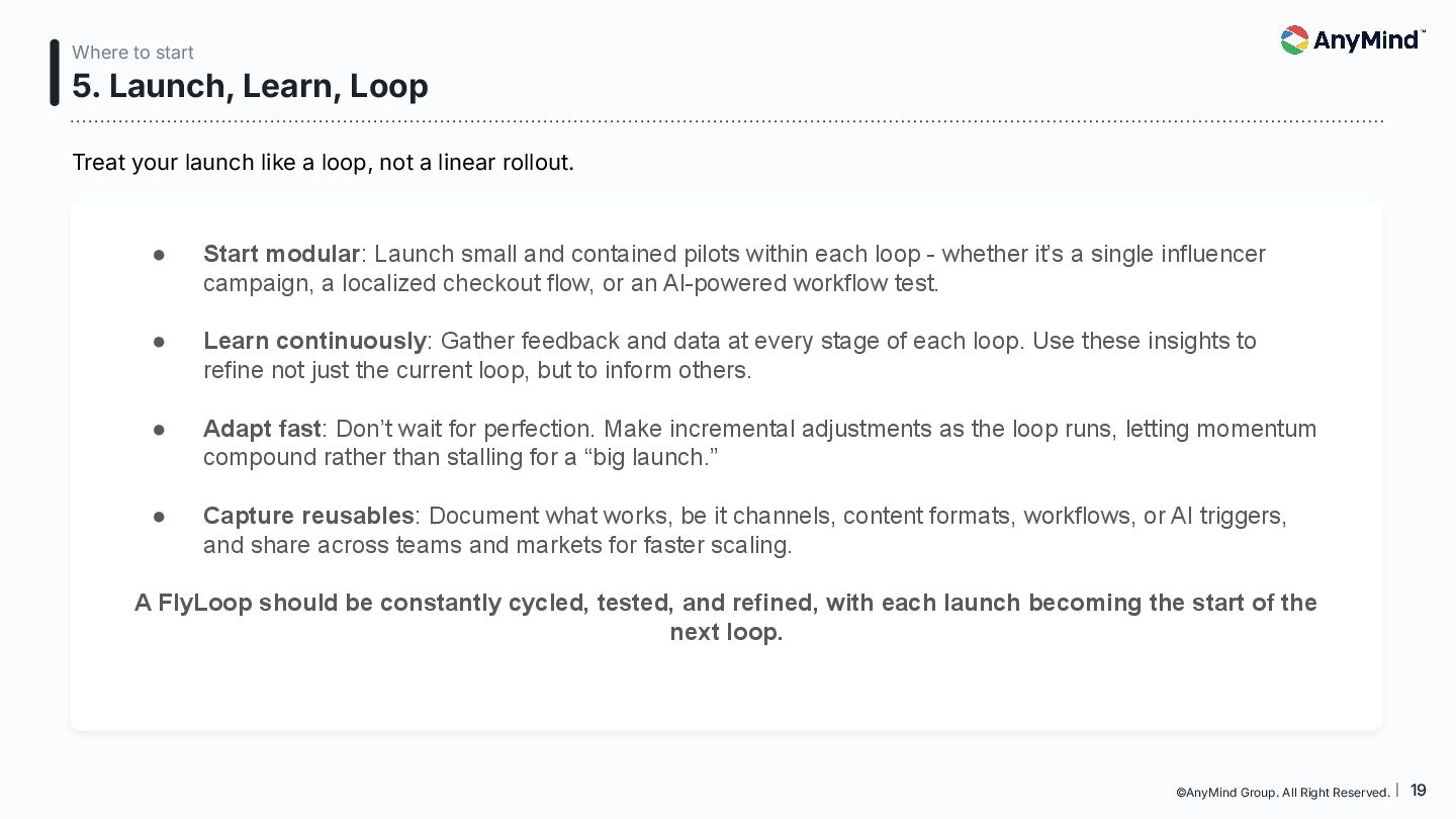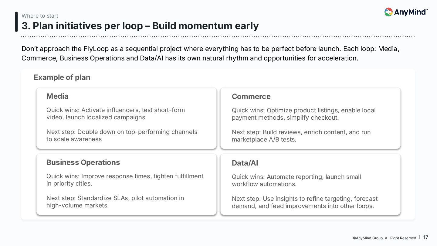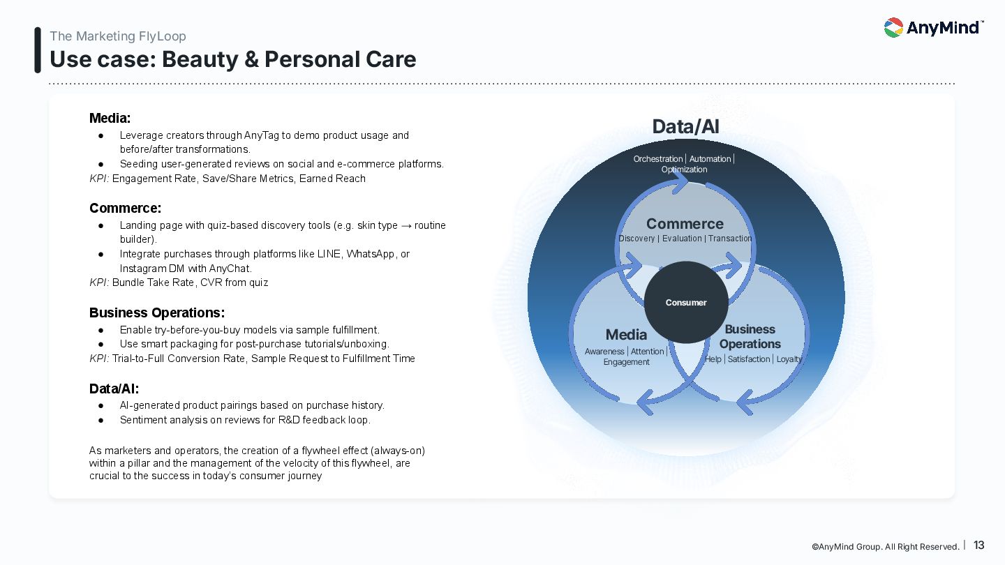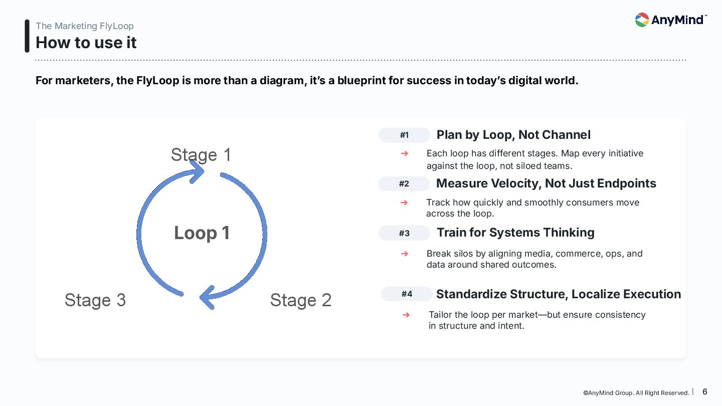 The Marketing FlyLoop is a modern framework that replaces the outdated linear marketing funnel with a non-linear, AI-powered, loop-based customer journey model. This deck breaks down how consumers move across Media, Commerce, Business Operations, and Data/AI, and provides a practical blueprint for orchestrating always-on, interconnected growth.