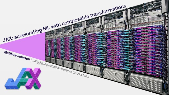 This talk is about JAX, a system for high-performance machine learning research and numerical computing. JAX offers the familiarity of Python+NumPy together with hardware acceleration. JAX combines these features with user-wielded function transformations, including automatic differentiation, automatic vectorized batching, end-to-end compilation (via XLA), parallelizing over multiple accelerators, and more. Composing these transformations is the key to JAX's power and simplicity. It’s used by researchers for a wide range of advanced applications, from large-scale neural net training, to probabilistic programming, to scientific applications in physics and biology.