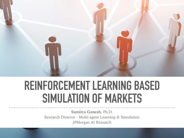 Agent-based simulation of markets provides a useful tool for policy optimization, counterfactual analysis, and market mechanism design. In this talk, we will present our work in modeling complex economic systems as a network of heterogeneous, utility maximizing agents with partial observability. We demonstrate how reinforcement learning (RL) can be used to solve two primary challenges in agent-based modeling — finding the equilibrium with multiple strategic agents and calibrating the model using real data. These techniques have been useful in enabling the practical application of agent-based modeling.