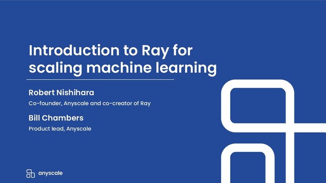 Join Robert Nishihara, co-creator of Ray, and Bill Chambers, product lead for Ray, for an introduction to Ray for scaling your ML workloads. Learn how Ray libraries (eg. Ray Tune, Ray Serve, etc) help you easily scale every step of your ML pipeline — from model training and hyperparameter search to production serving.