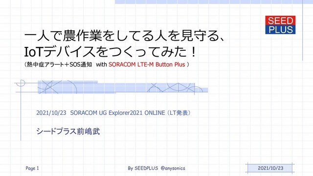 ¥5,203 温湿度センサー ENV Ⅱ スイッチサイエンス ¥913 リレーユニット M5Stack用ミニリレーユニット スイッチサイエンス ¥462 拡張ユニット M5GOBaseLite(LEDなし) スイッチサイエンス ¥1,100 拡張ユニットカバー M5GOBaseLiteカバー スイッチサイエンス ¥220 IoT通信ユニット SORACOM LTE-M Button Plus ㈱ソラコム ¥8,118 ケース試作・加工部材等 お弁当箱・ベルクロ・テープ類 ダイソーなど ¥1,000 IoT機器対応モバイルバッ テリー cheero Canvas 3200mAh Amazon ¥2,500 合計 (送料別) ¥19,516 By SEEDPLUS @anysonica Page 7
