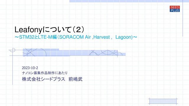 Leafonyについて(2) ~STM32とLTE-M編(SORACOM Air ,Harvest , Lagoon)~ 2023-10-2 ナノコン募集作品制作にあたり 株式会社シードプラス 前嶋武