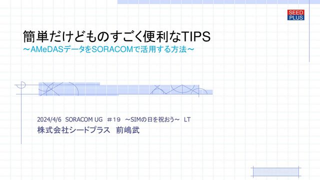 このPDFは、「AMeDASデータをSORACOMで活用する方法」と題したプレゼンテーションの記録です。株式会社シードプラスの前嶋武によるもので、2024年4月6日のSORACOM UG(ユーザーグループ)#19のイベントで発表されました。このセッションでは、長野県の古民家再生プロジェクトと農業支援の経験を基に、遠隔地でのIoT利用の基礎を築く試みについて述べられています。具体的には、350km離れた農地の気象状況と古民家内の環境をリアルタイムで監視するためにAMeDASデータとSORACOMを組み合わせたシステムの構築に焦点を当てています。