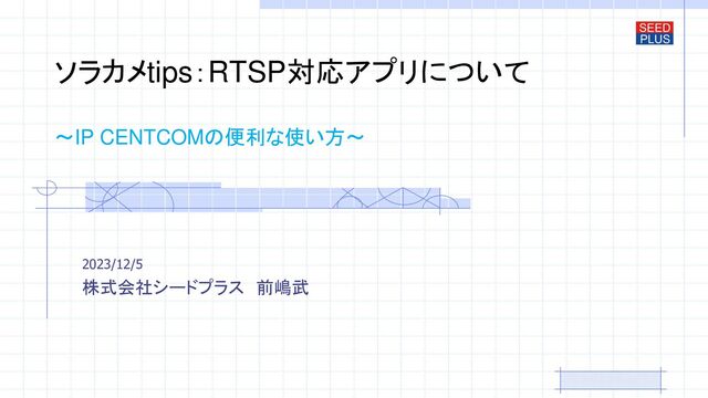 をそのまま使う ことができる。 • Pro版を使っても840円程度なので非常に安価である。 • マルチビューに対応しており、 監視カメラをそのままソラカメで使うことができる。 https://apps.microsoft.com/detail/9NBLGGH2SJQG?hl=ja-jp&gl=JP 2024/02/14 By SEEDPLUS @anysonica Page 3