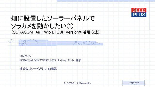 2022/7/7 SORACOM DISCOVERY 2022 ナイトイベント 発表 発表者 株式会社シードプラス 前嶋武