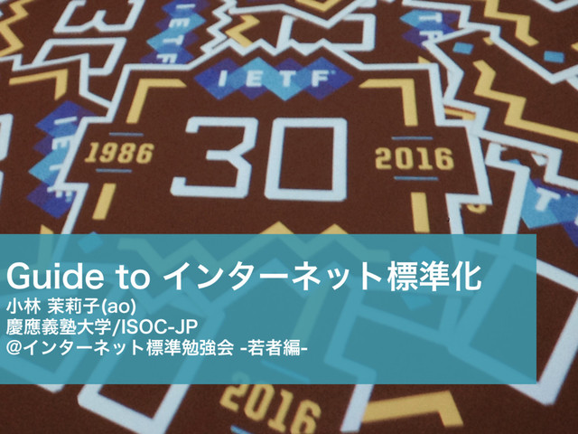 • දతͳϓϩτίϧ – *1 3'$ 5$1 3'$ '51 3'$ ͳͲ • 3'$ 3FRVFTUGPS$PNNFOUT ʹΑΔ༷ެ։ – ݱࡏɺ3'$·Ͱެ։ – 3'$લͷจॻ*OUFSOFU%SBGU *% υϥϑτ • ಛ – lݸਓzͱͯ͠ࢀՃ – l0QFOzͳࢀՃɾඪ४Խաఔɾඪ४༷ – l3PVHI$POTFOTVT 3VOOJOH$PEFzॏࢹ “We reject kings, presidents and voting. We believe in rough consensus and running code” by David Clark, MIT
