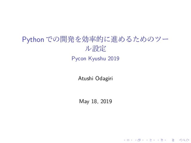 Python での開発を効率的に進めるためのツー ル設定 Pycon Kyushu 2019 Atushi Odagiri May 18,