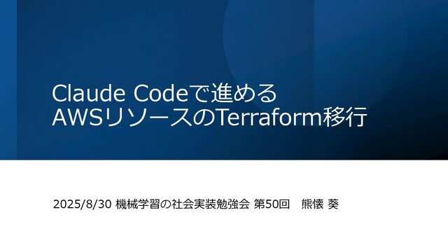 Claude Codeで進める AWSリソースのTerraform移行 2025/8/30 機械学習の社会実装勉強会 第50回 熊懐 葵