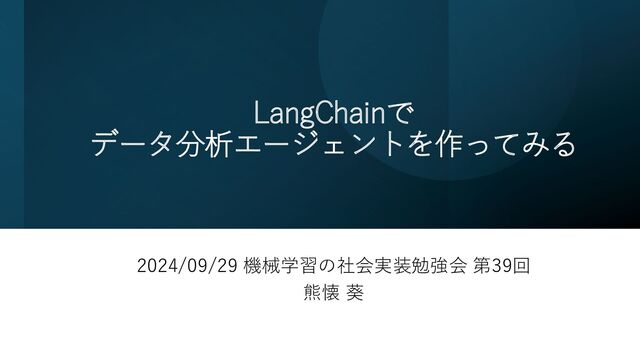 LangChainで データ分析エージェントを作ってみる 2024/09/29 機械学習の社会実装勉強会 第39回 熊懐 葵
