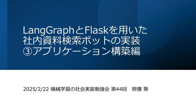 LangGraphとFlaskを用いた 社内資料検索ボットの実装 ③アプリケーション構築編 2025/2/22 機械学習の社会実装勉強会 第44回 熊懐 葵