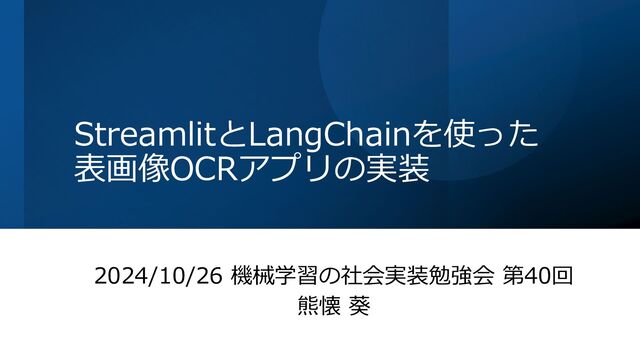StreamlitとLangChainを使った 表画像OCRアプリの実装 2024/10/26 機械学習の社会実装勉強会 第40回 熊懐 葵