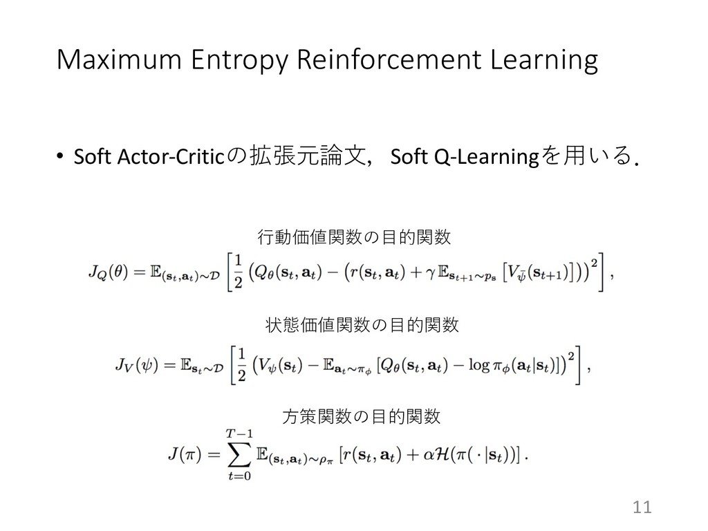 Maximum Entropy Reinforcement Learning • Soft Actor-Critic Soft Q-Learning 11
