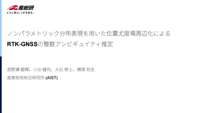 課題: 整数アンビギュイティ空間上でのサンプリングは難しい • 真値を含む分布の定義域が不明 • 衛星間の相互関係のモデル化が困難 → サンプリング効率が向上できない • サンプル間の組合せ爆発 → 衛星数k個で,1k, 10k, 20k, …個の組合せパターン 提案手法: 位置尤度場周辺化 • AFMを応用して位置空間上で整数アンビギュイティの確率分布をサンプリングする 膨大なサンプル数が必要 → 3軸で,1003, 2003, 3003, …個 GPUによって計算処理速度を向上させる 𝑝 𝑵𝑡 |𝒛𝑡 ∝ 𝑝 𝒛𝑡 |𝑵𝑡 𝑝 𝑵𝑡 事後分布 尤度分布 事前分布 状態変数: 𝑵𝑡 ∈ ℤ𝑘 整数アンビギュイティ 観測変数: 𝒛𝑡 ∈ ℝ𝑘 搬送波位相