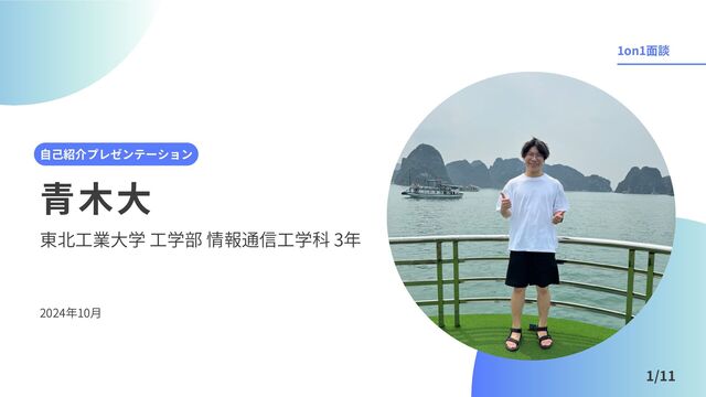 青木大 自己紹介プレゼンテーション 東北工業大学 工学部 情報通信工学科 3年 2024年10月 1on1面談 1/11