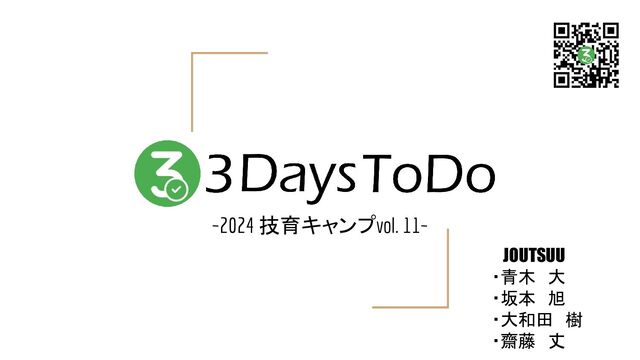 2024/8/3-4「【技育CAMP】ハッカソン Vol.11」にて制作 GitHub : https://github.com/Aoki-Dai/3days-todo URL : https://aoki-dai.github.io/3days-todo/