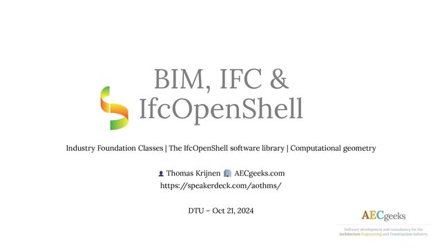 checks (length of exit routes, accessibility requirements on dimensions, …) • Many of IFC issues stem in interoperability stem from unsupported geometric constructs or differences in interpretation thereof • Many of the interoperability challenges with other standards/domains require complex geometric transformations (a topologically valid separation between exterior and interior for GIS, thermal interfaces for simulations, …) • Geometry is often the one single aspect that is uniformly described among different models