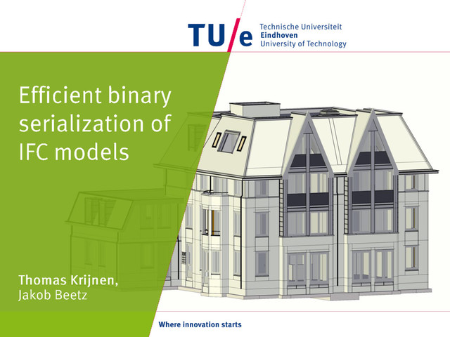 However, prevalent encoding forms of IFC models are text-based. And even though, in terms of file size, the most prevalent encoding, called IFC-SPF, can be rather efficient, by nature, it does not facilitate random access seeking in the file and no ordering is imposed to the definition of elements in the file. Therefore, at worst, the entire file needs to be traversed in order to find instances of interest. Furthermore, text-based data is slow to parse in comparison to its binary equivalent.