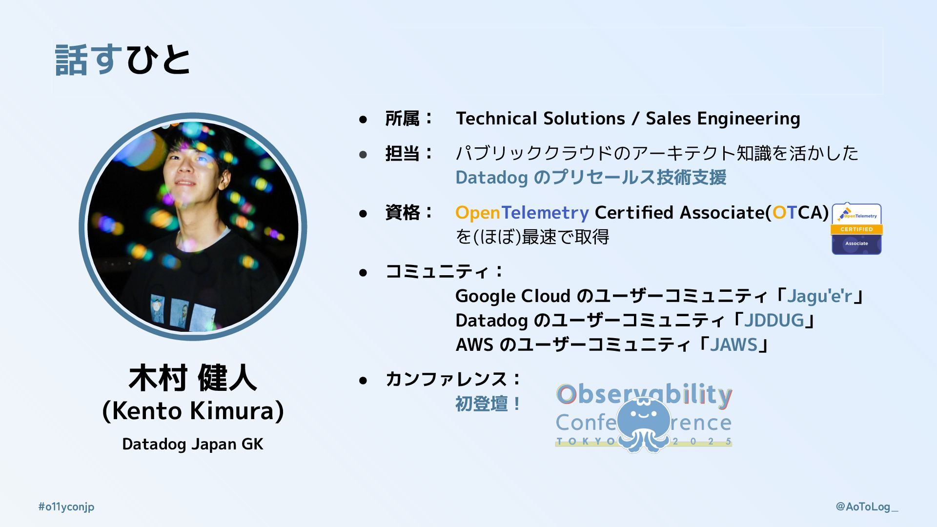 @AoToLog_ #o11yconjp 27th Oct, Observability Conference Tokyo 2025 Speaker: Kento