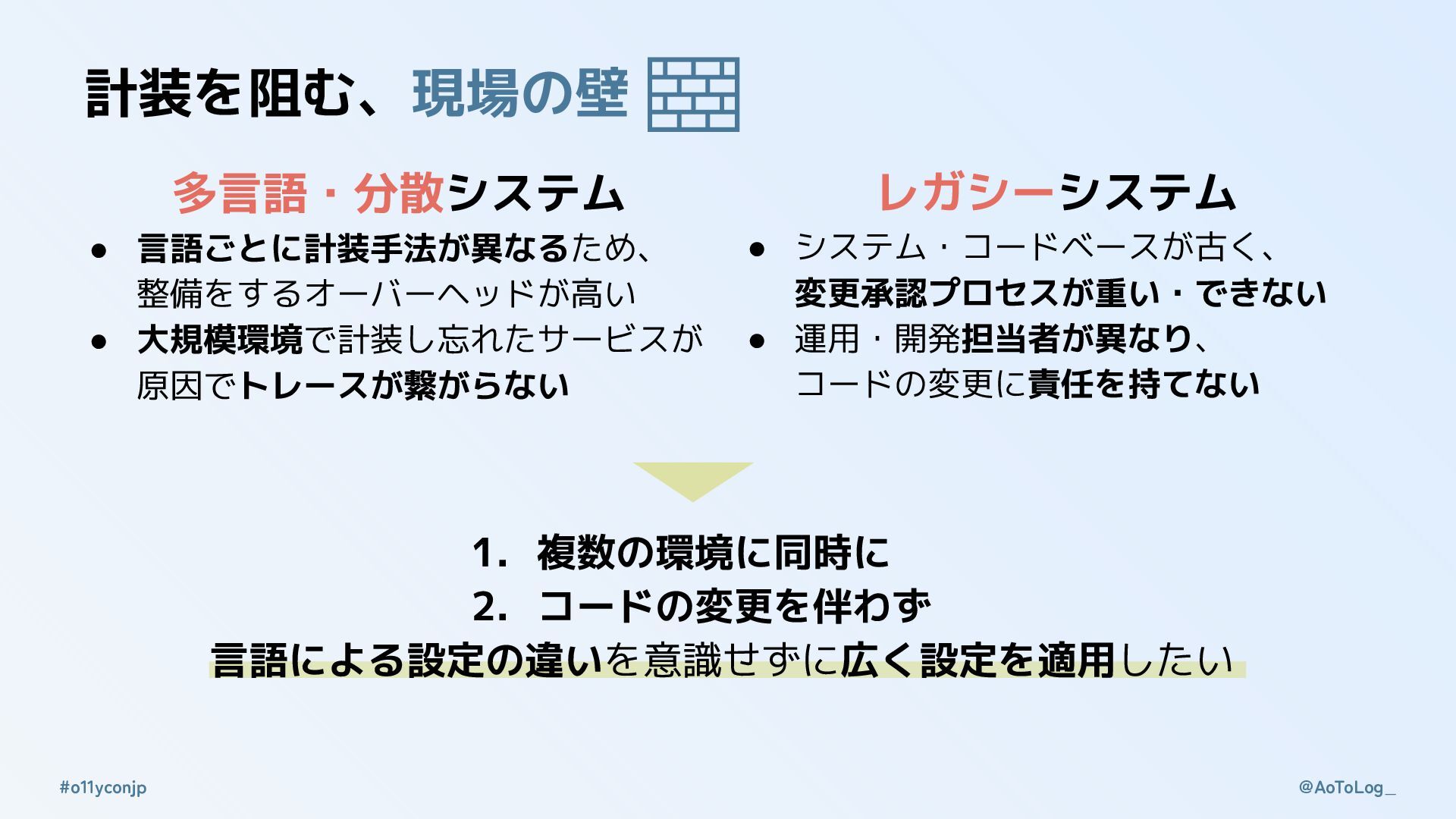 @AoToLog_ #o11yconjp 現場の壁を超える計装