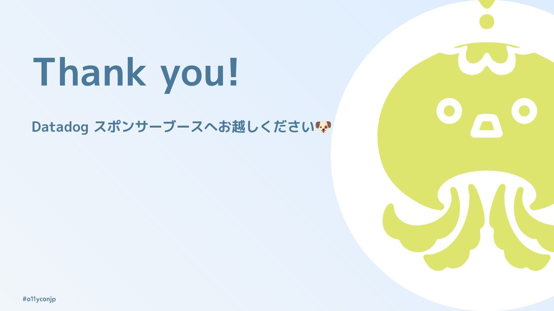 @AoToLog_ #o11yconjp Thank you! Datadog スポンサーブースへお越しください🐶