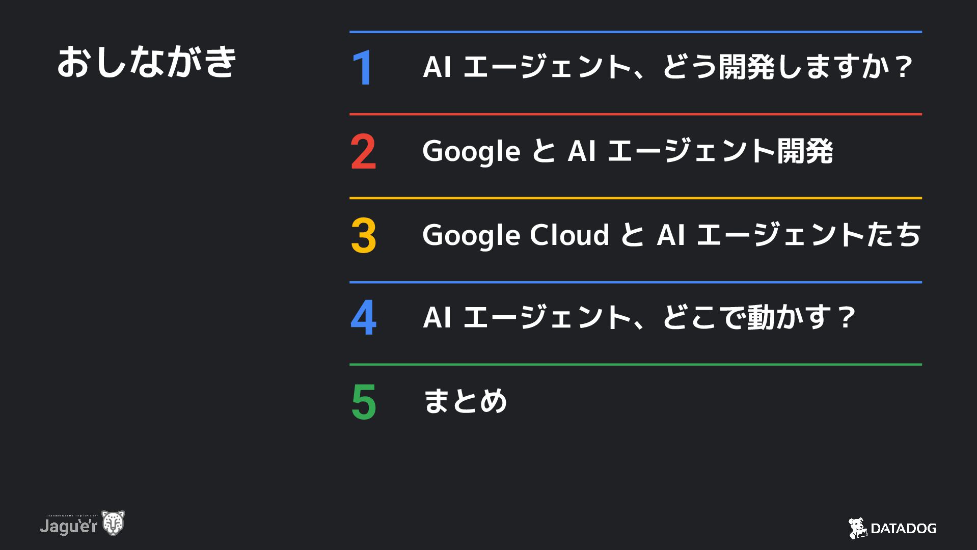 3. おしながき 1 AI エージェント、どう開発しますか? 2 Google と AI エージェント開発 3